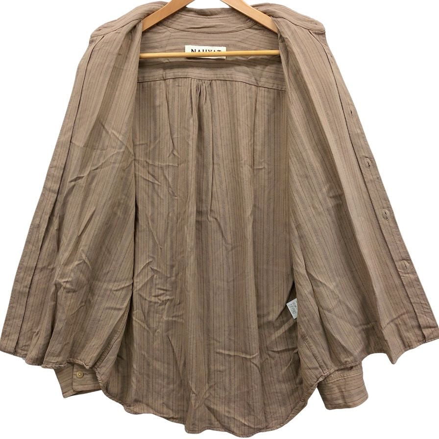中古◆ナヤット レーヨン ロングスリーブ ストライプシャツ W-007 ブラウン サイズ3 長袖 日本製 NAHYAT MADE IN JAPAN 【AFB47】