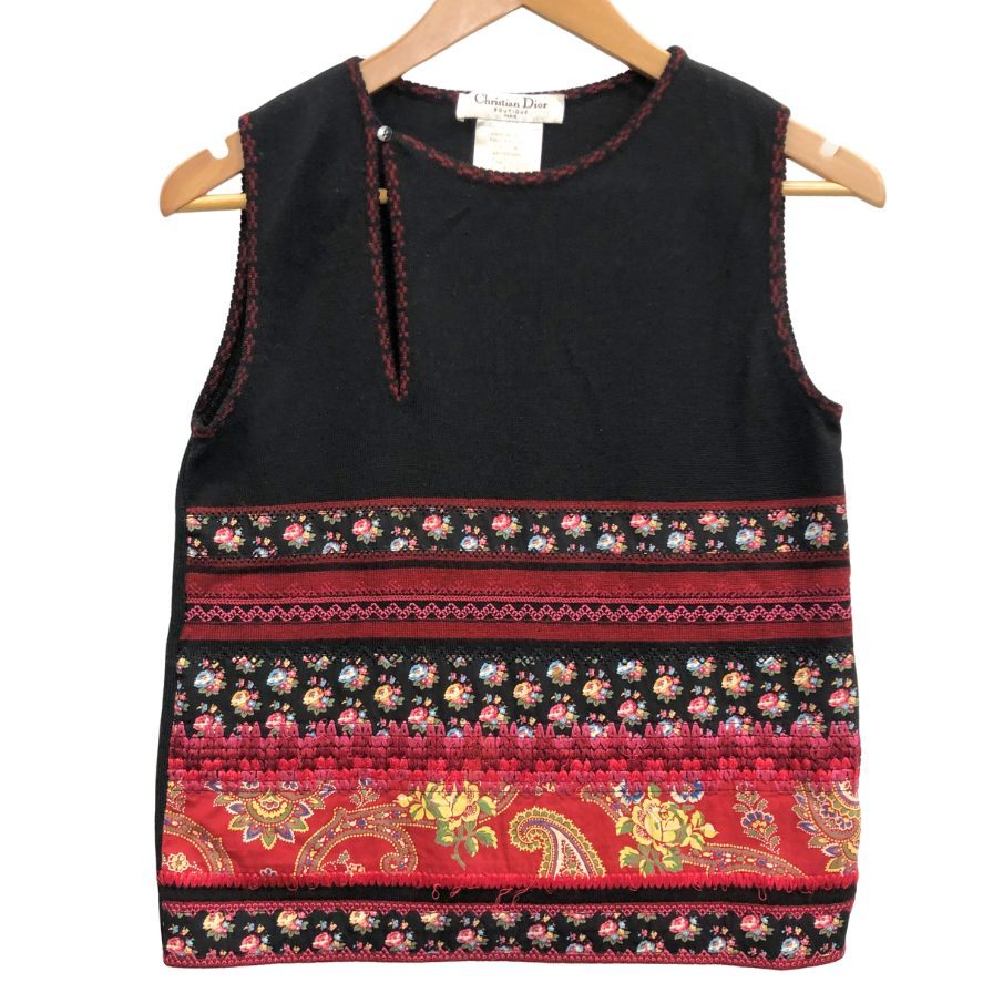 美品◆クリスチャンディオール ノースリーブトップス ブティック ジョンガリアーノ期 刺繍 レディース ブラック サイズ2 Christian Dior 【AFB11】