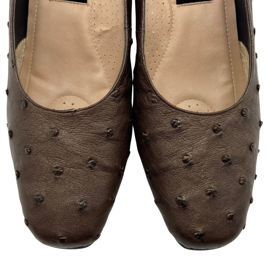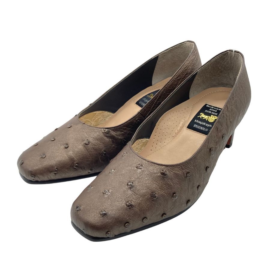 新宿屋 レザーパンプス オーストリッチ 5410-880 ブラウン 23.5cm レディース shinjukuya 約23.5cm【7-6】