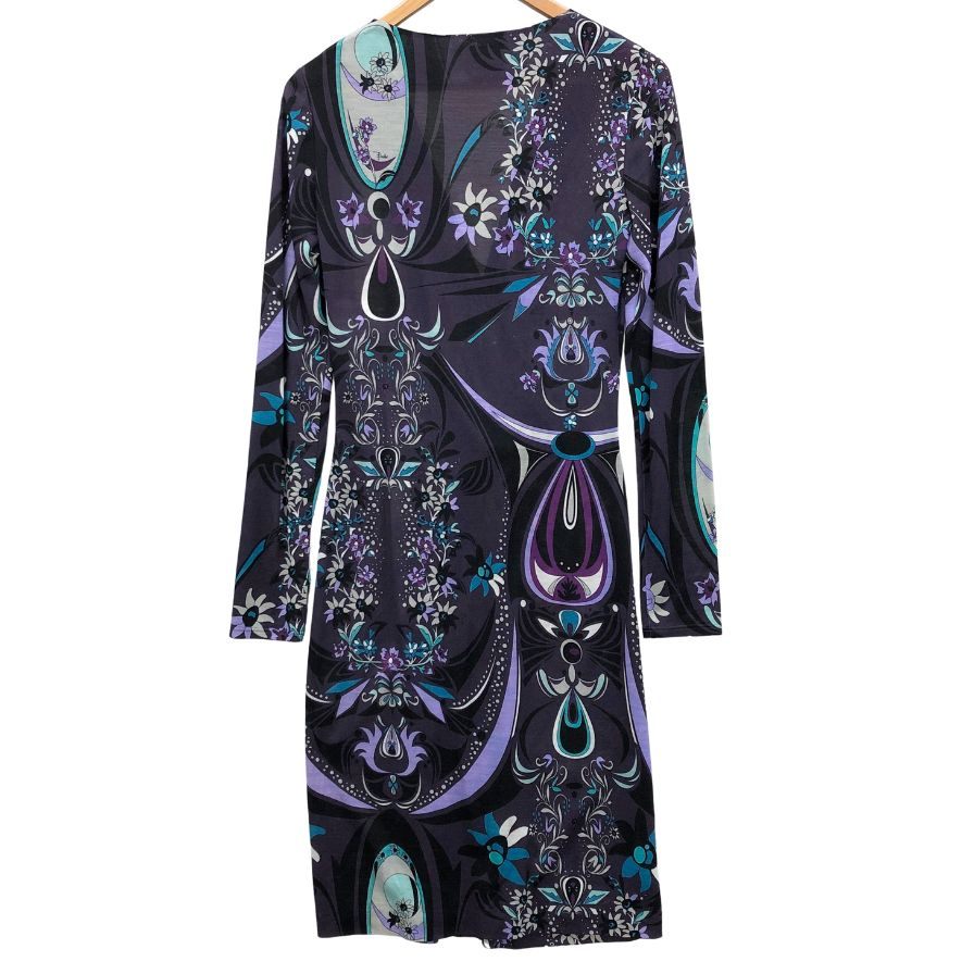 美品◆エミリオプッチ ワンピース 総柄 デザイン カシュクール ウール ナイロン パープル レディース サイズ38 EMILIO PUCCI 【AFB22】