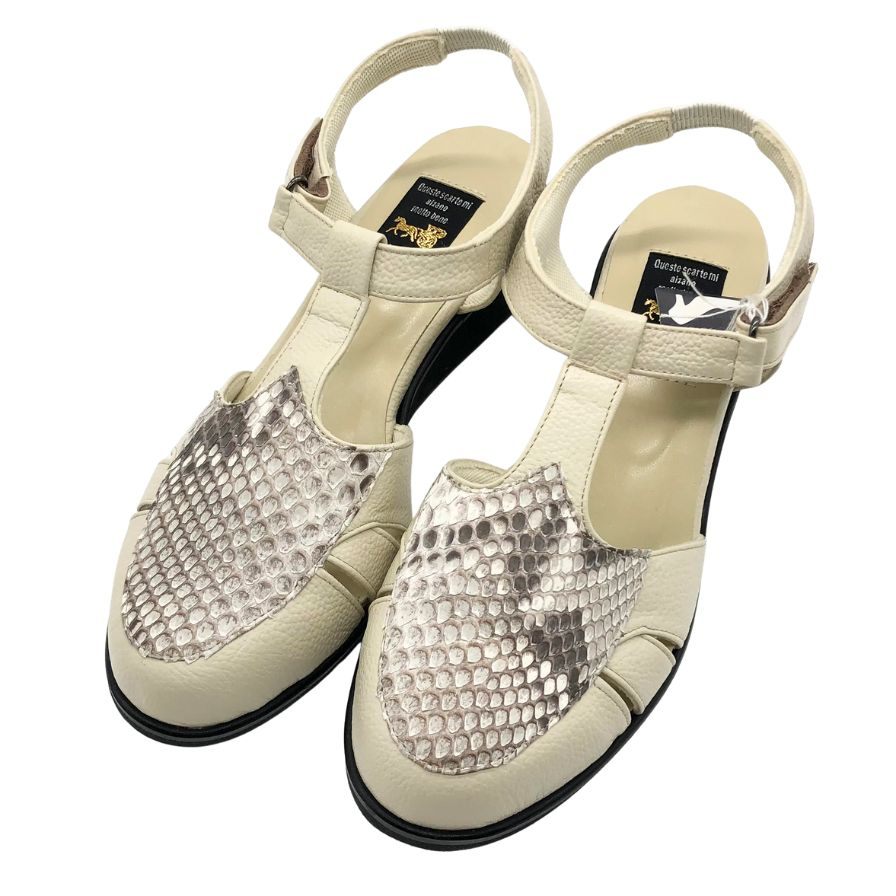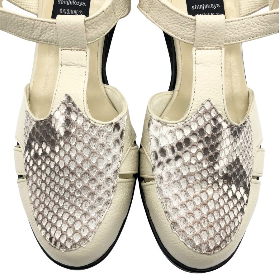 新宿屋 レザーパンプス パイソン 4500-545 22.5cm レディース アイボリー shinjukuya 約22.5cm【7-13】