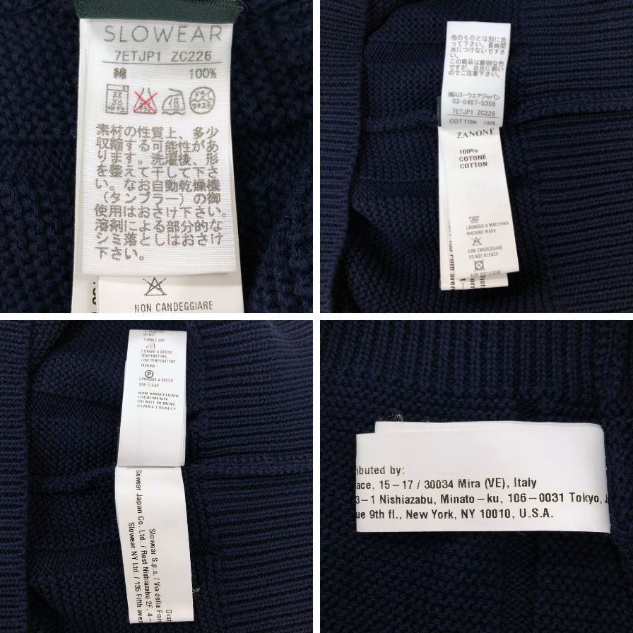 美品◆ザノーネ ニット クルーネック コットン100% メンズ ネイビー サイズ46 ZANONE 【AFB6】
