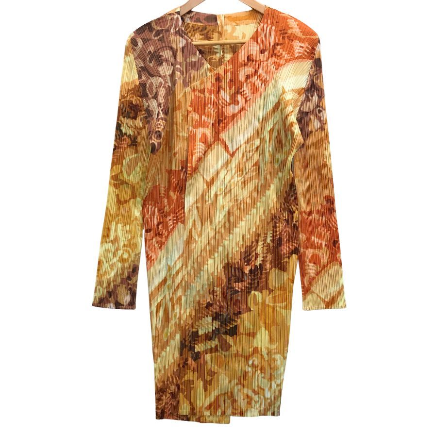 極美品◆プリーツプリーズ イッセイミヤケ コート 総柄 イエロー レディース サイズ5 PP11-JA596 PLEATS PLEASE ISSEY MIYAKE 【AFB32】