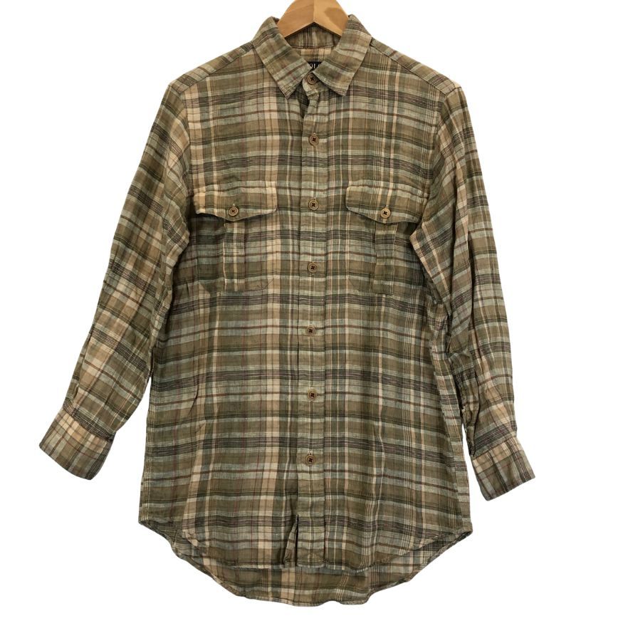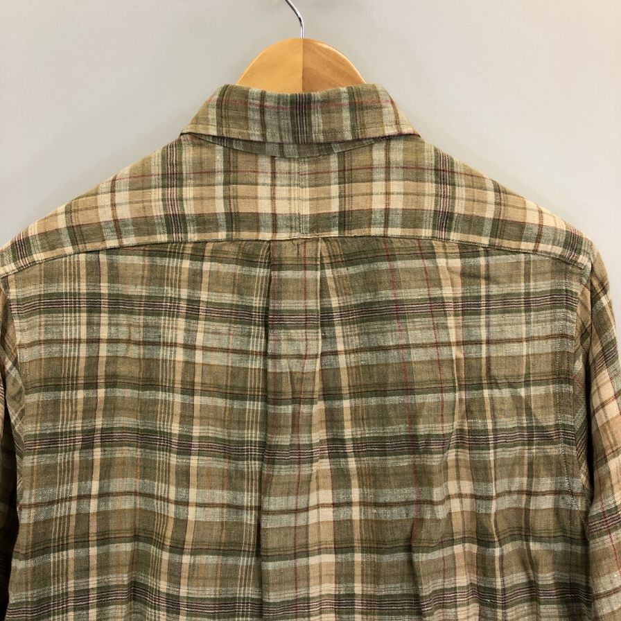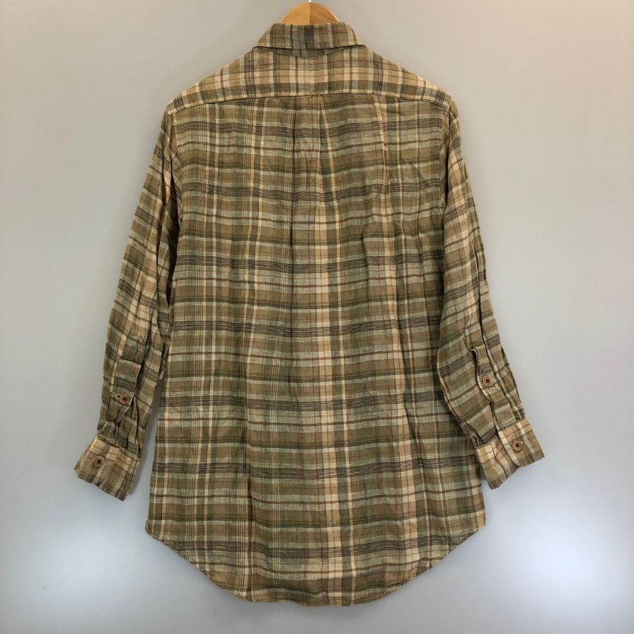 極美品◆ポロ ラルフローレン リネンシャツ 長袖 チェック ブラウン系 サイズS Polo Ralph Lauren 【AFB10】