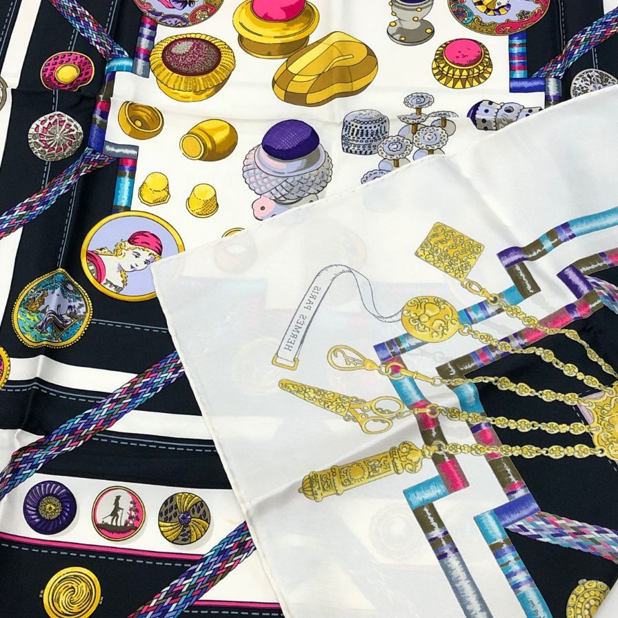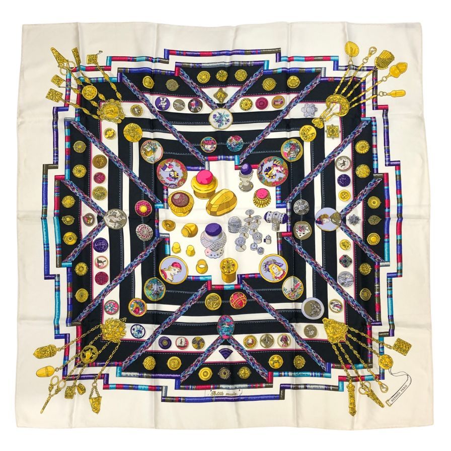エルメス スカーフ カレ90 お針子さん PETIT MAIN ホワイト系 HERMES【AFI18-2】