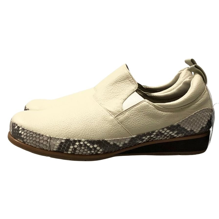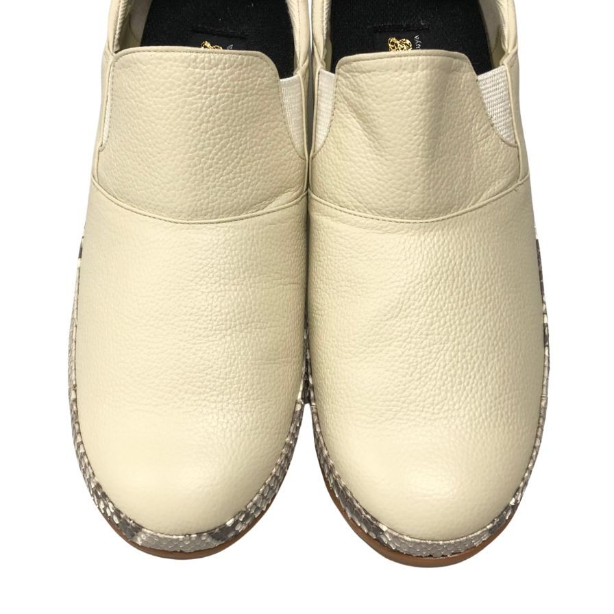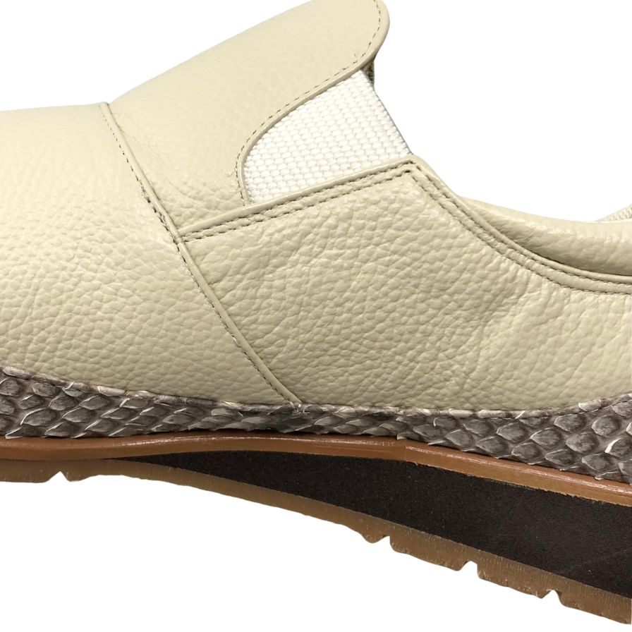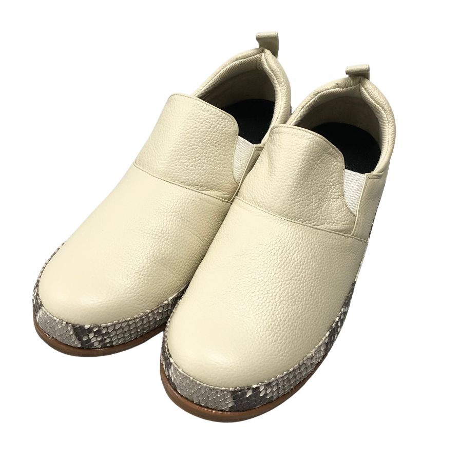 新宿屋 レザースニーカー レザー×パイソン 0230-545 ホワイト 24.0cm レディース shinjukuya 約24.0cm【7-6】