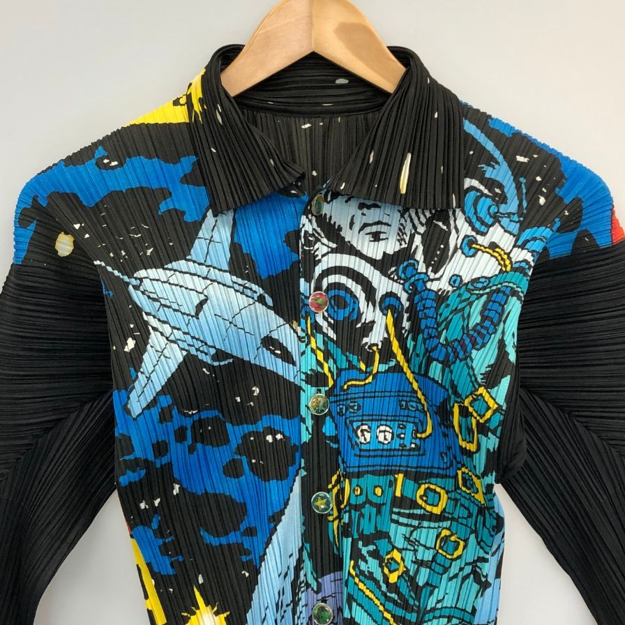 美品◆プリーツプリーズ イッセイミヤケ 長袖シャツ コミック柄 レディース サイズ3 PP91-JK043 PLEATS PLEASE ISSEY MIYAKE 【AFB39】