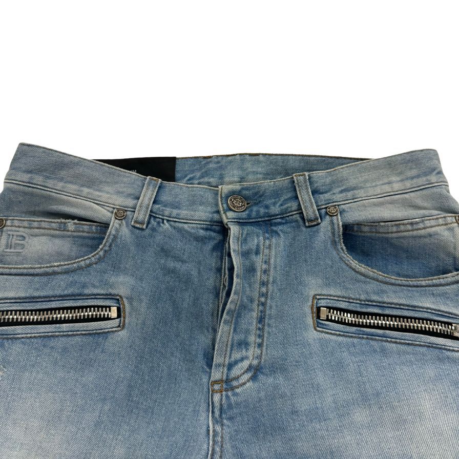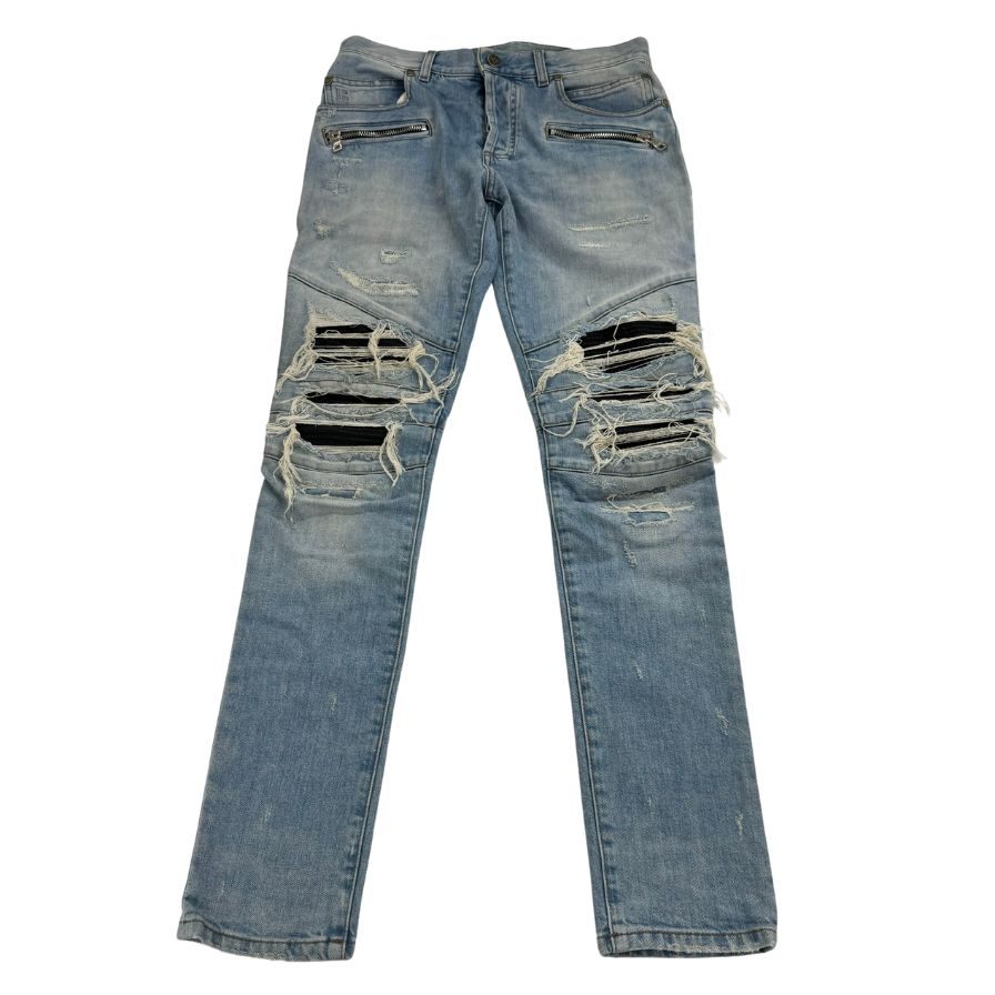 バルマン バイカーデニムパンツ クラッシュ加工 インディゴ メンズ サイズ30 BALMAIN 【AFB12】