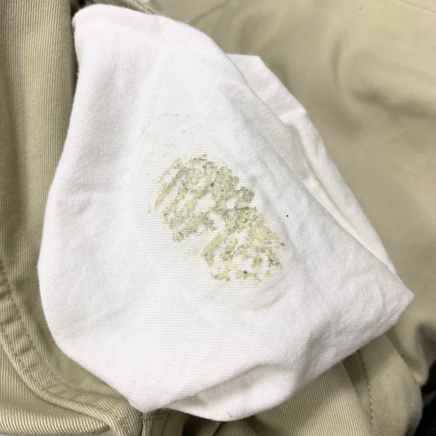 全体スレ・シワ、ポケット内側ベタつき、お尻部分に汚れが見られます。 |