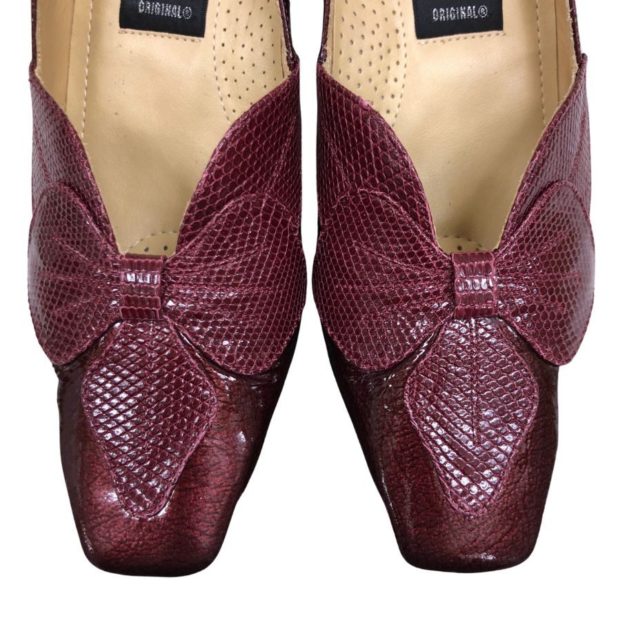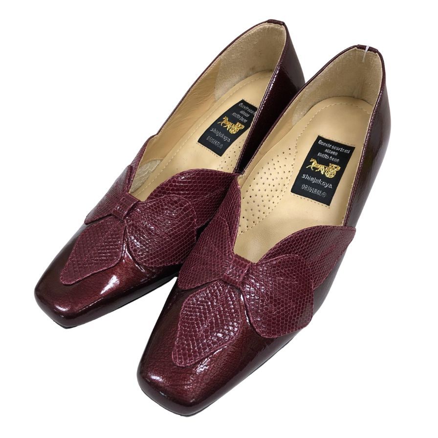 ジュンジュンバイ新宿屋 パンプス ヒール レザー×リザード 5106 ボルドー サイズ21.5cm レディース Jun.Jun by shinjukuya 約21.5cm【7-13】