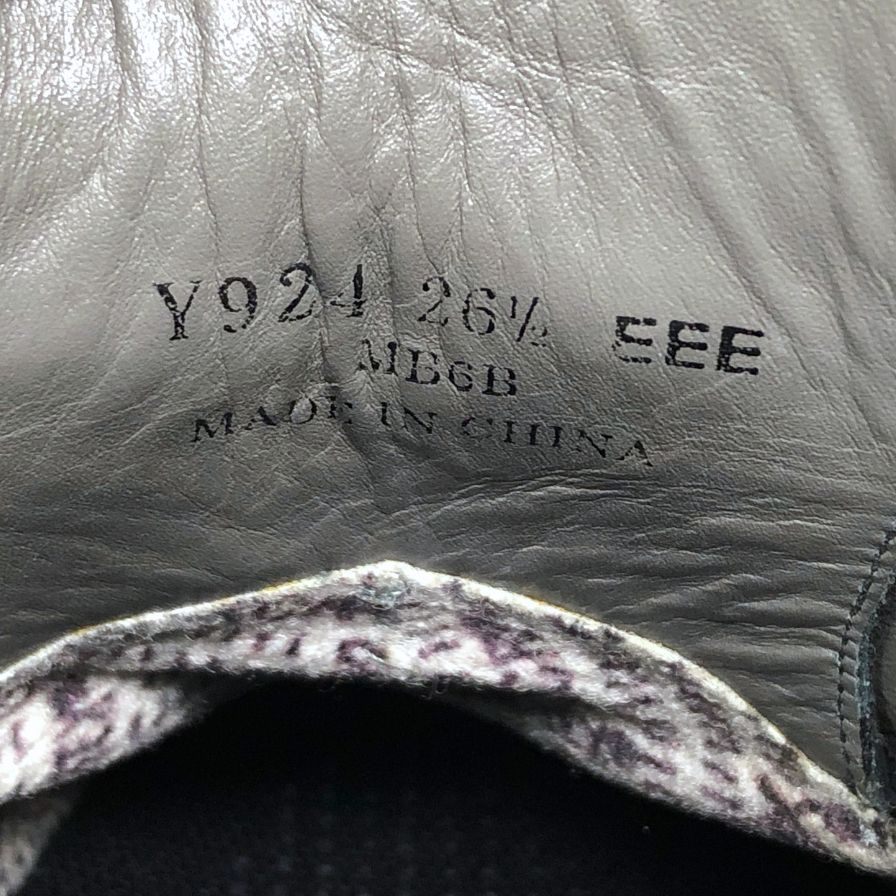 商品詳細 | 表記サイズ【26.5EEE】(約26.5cm) アウトソール縦:31.5cm アウトソールウィズ:11.5cm 全高:13cm ヒール:3cm ※採寸に関しまして1~2cm程誤差が出てしまう場合もございます。予めご了承くださいませ。 |