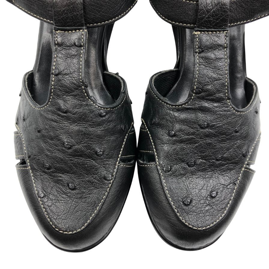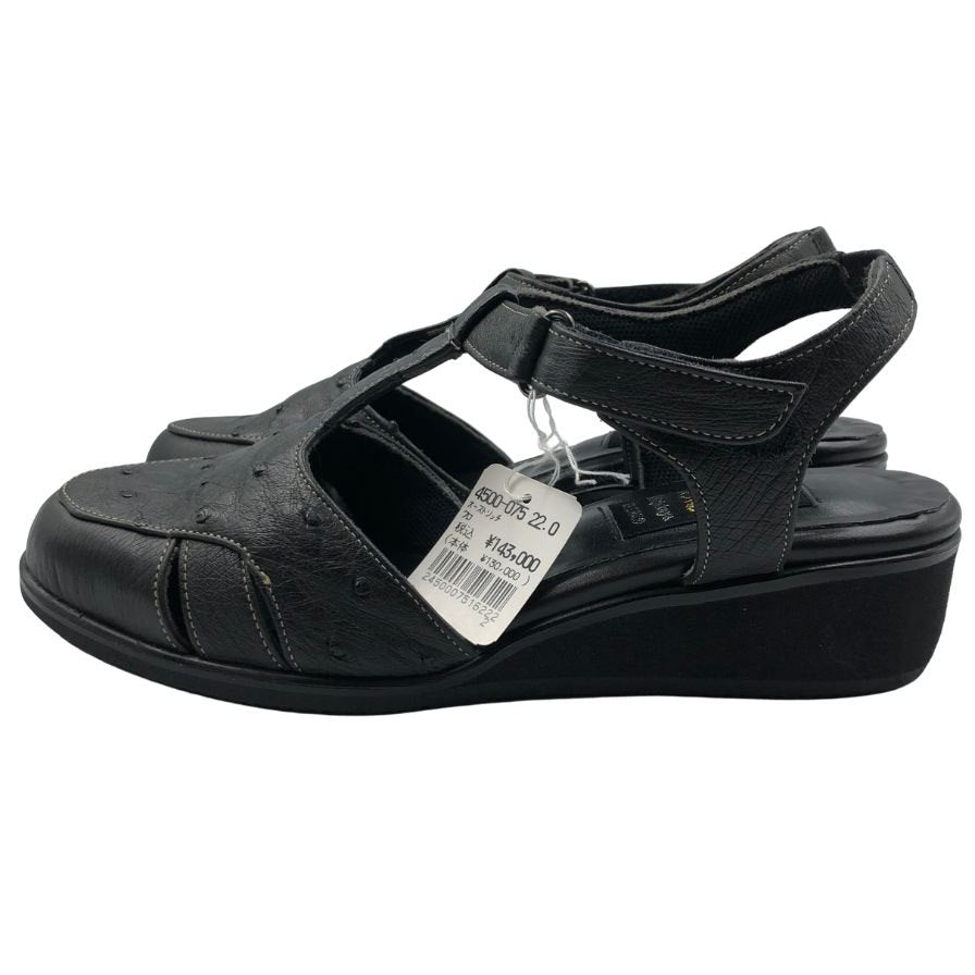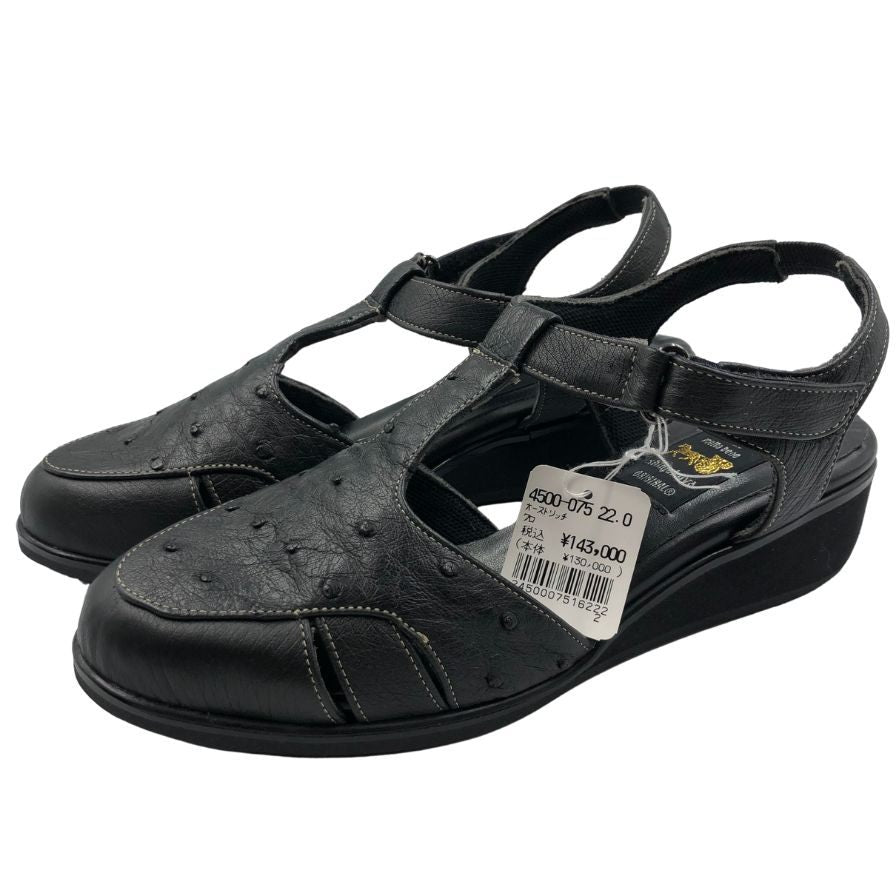 新宿屋 レザーパンプス オーストリッチ 4500-075 ブラック 22.0cm レディース shinjukuya 約22.0cm【7-5】