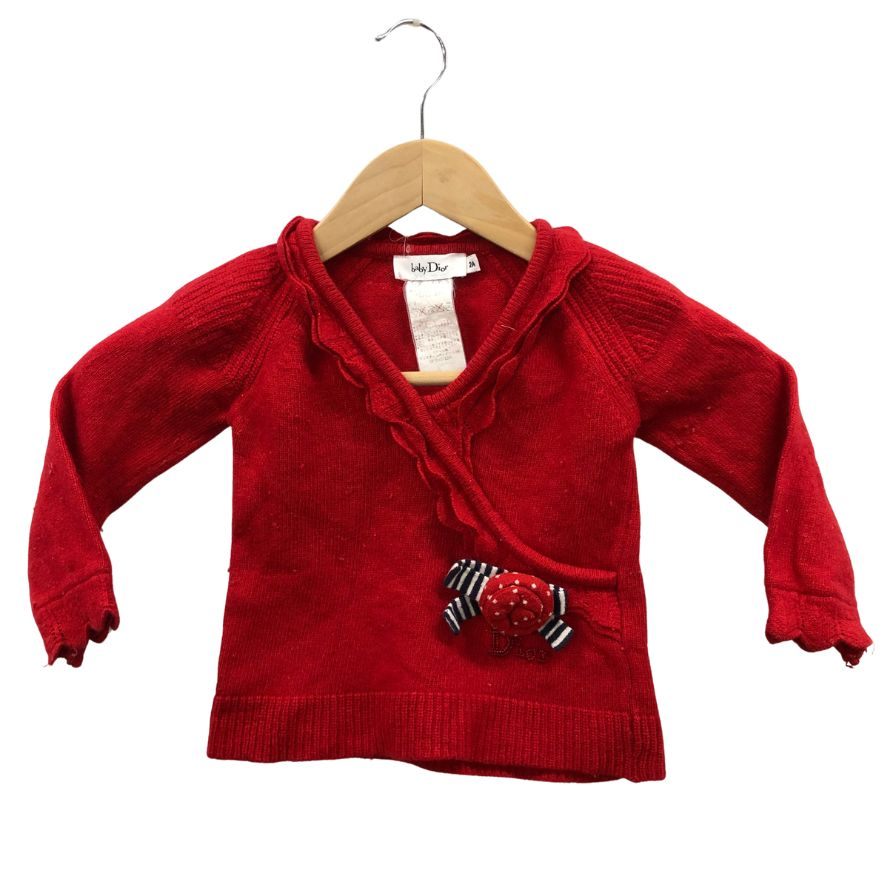 中古◆ベイビー ディオール ニットセーター フラワーデザイン サイズ2A レッド系 キッズ baby Dior 【AFB5】