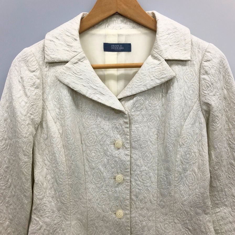 中古◆フランコフェラーロ フラワージャケットコート ホワイト サイズ3 レディース 花柄 日本製 FRANCO FERRARO 【AFB9】