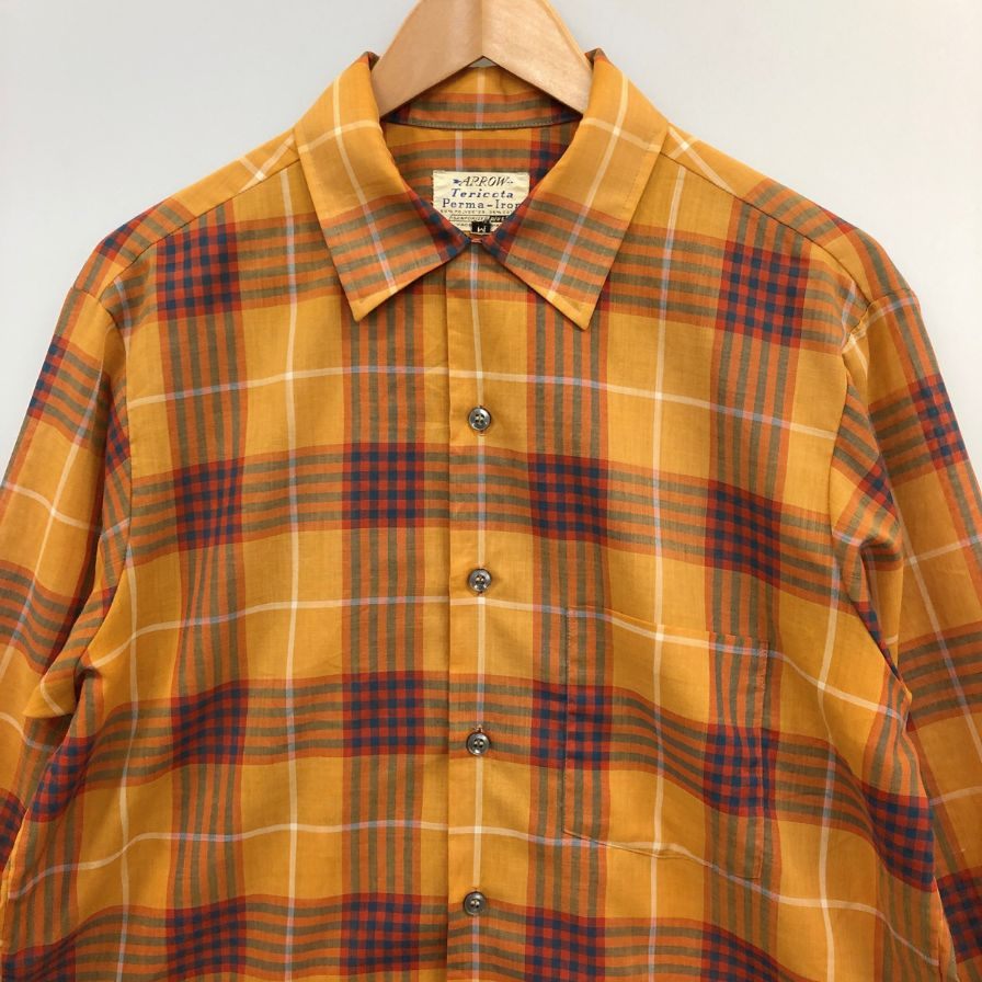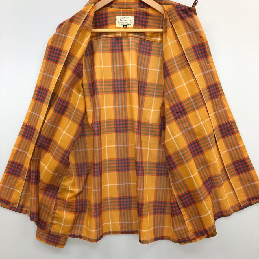 美品◆アロー 70S 長袖シャツ ヴィンテージ チェック メンズ サイズM ARROW 【AFB26】