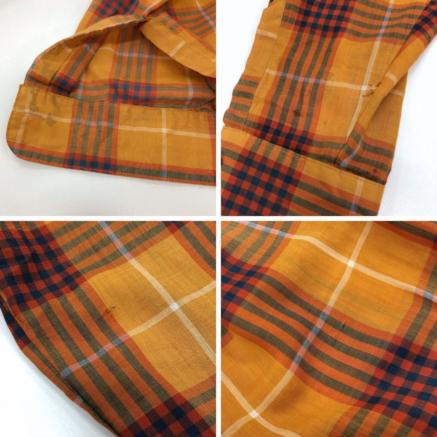 ブランドタグ黄ばみ、袖シミ、前身ごろ弱糸ヨレ・汚れ、後ろ身ごろ弱ほつれ、内側糸ほつれが見られます。 |
