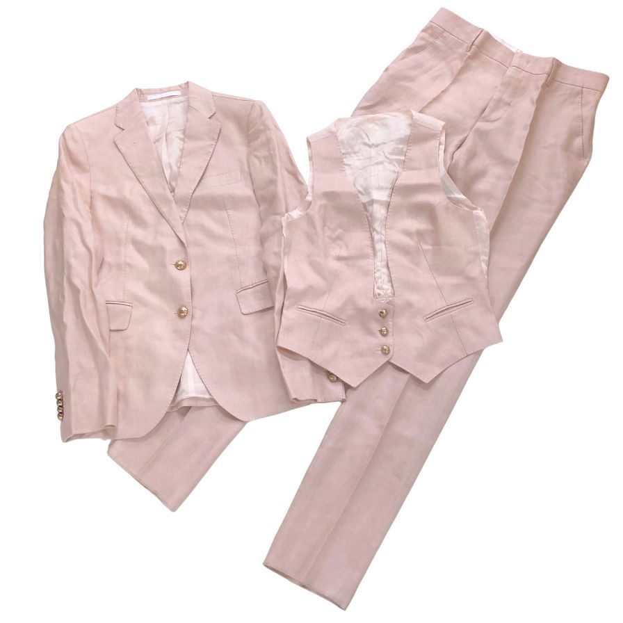 タリアトーレ スーツ セットアップ スリーピース 2B 金ボタン サイドベンツ 麻 ピンク レディース サイズ42 TAGLIATORE【AFB30】