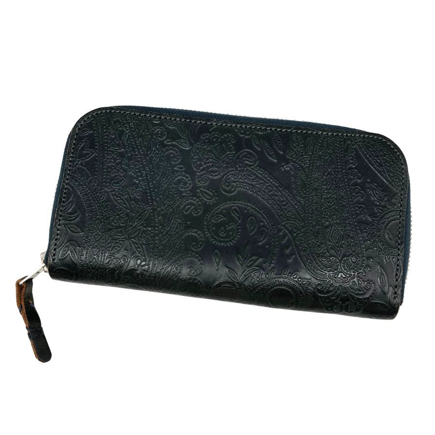 セット 長財布 ROUND FASTENER LONG WALLET PAISLEY 型押し レザー ブルー メンズ SETTO【AFI12】