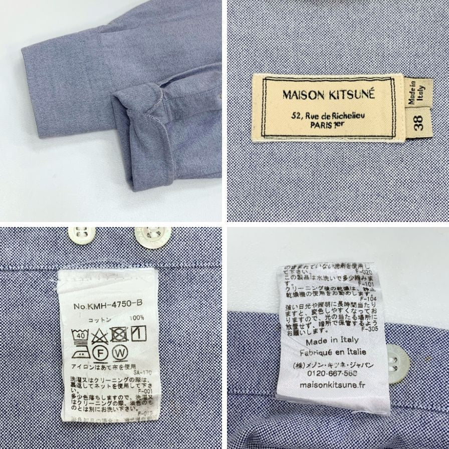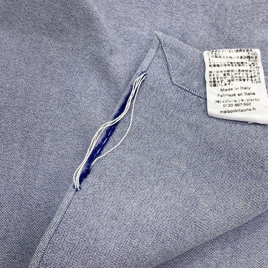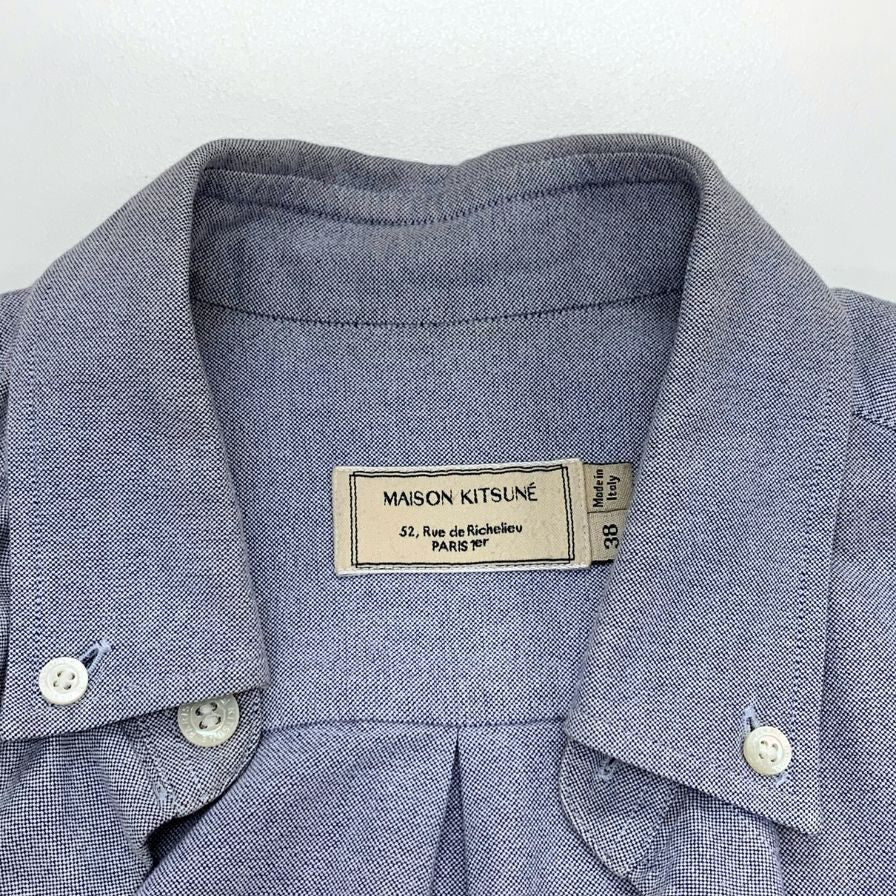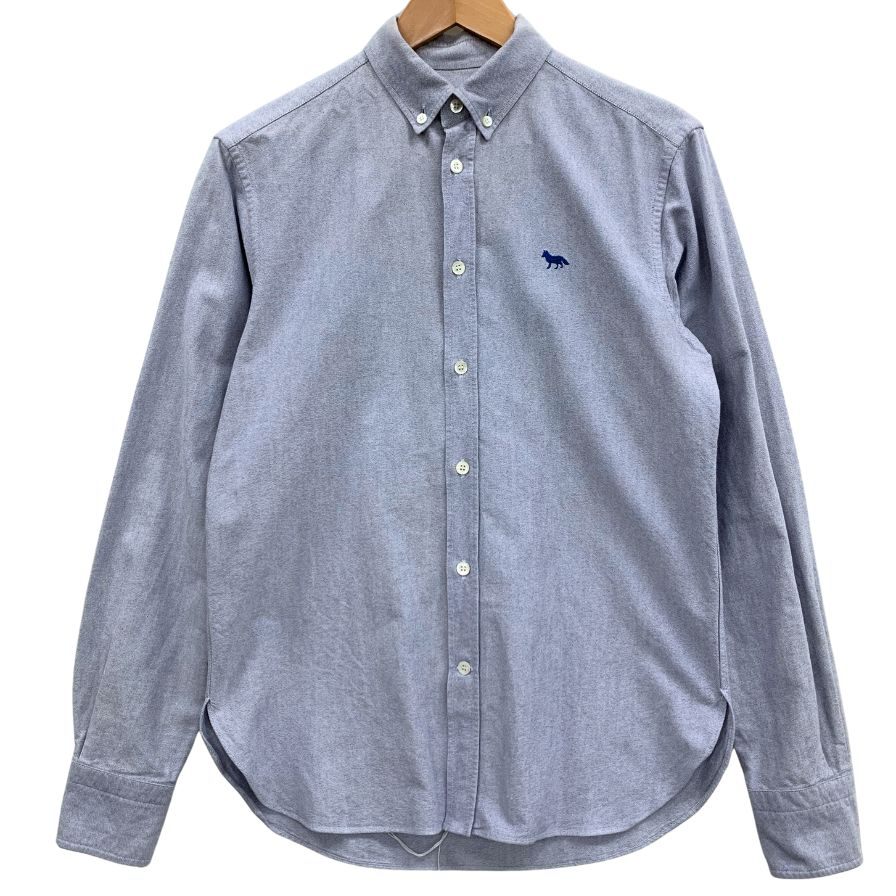 中古■メゾンキツネ オックスフォードシャツ コットン ボタンダウン 刺繍 長袖 L/S ブルー メンズ サイズ38 Maison Kitsune 【AFB6】