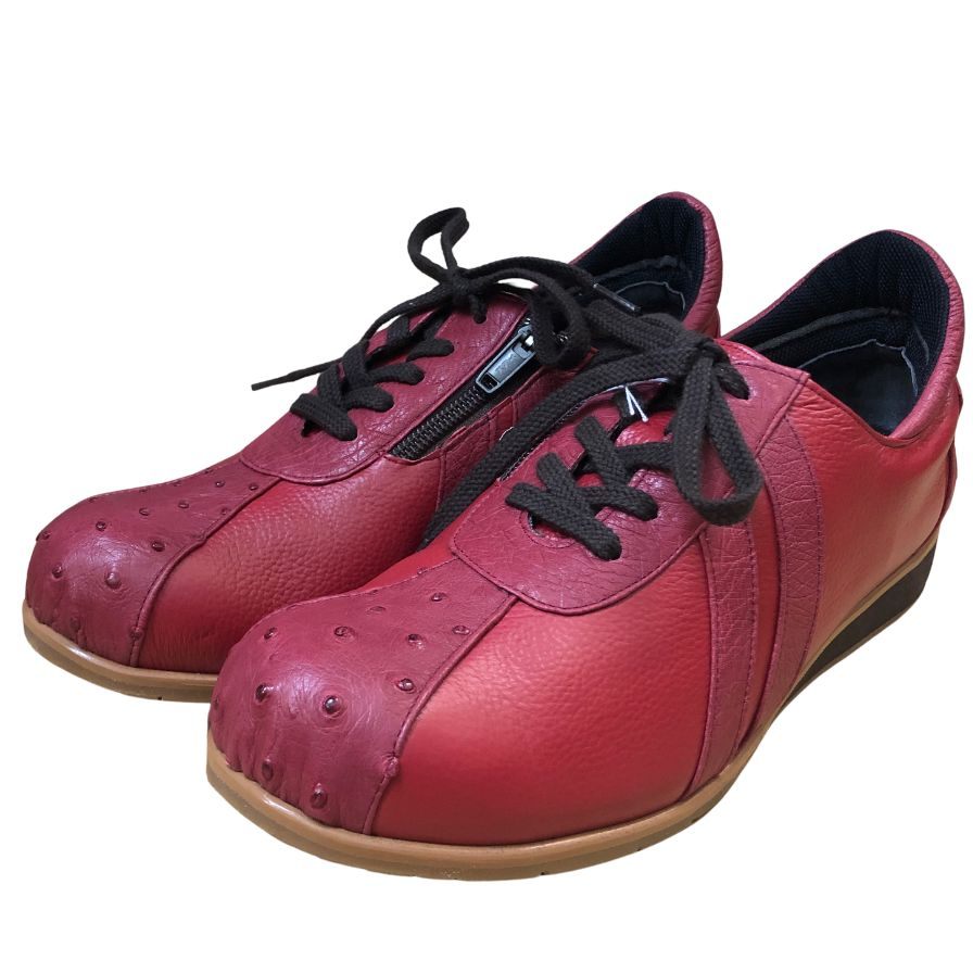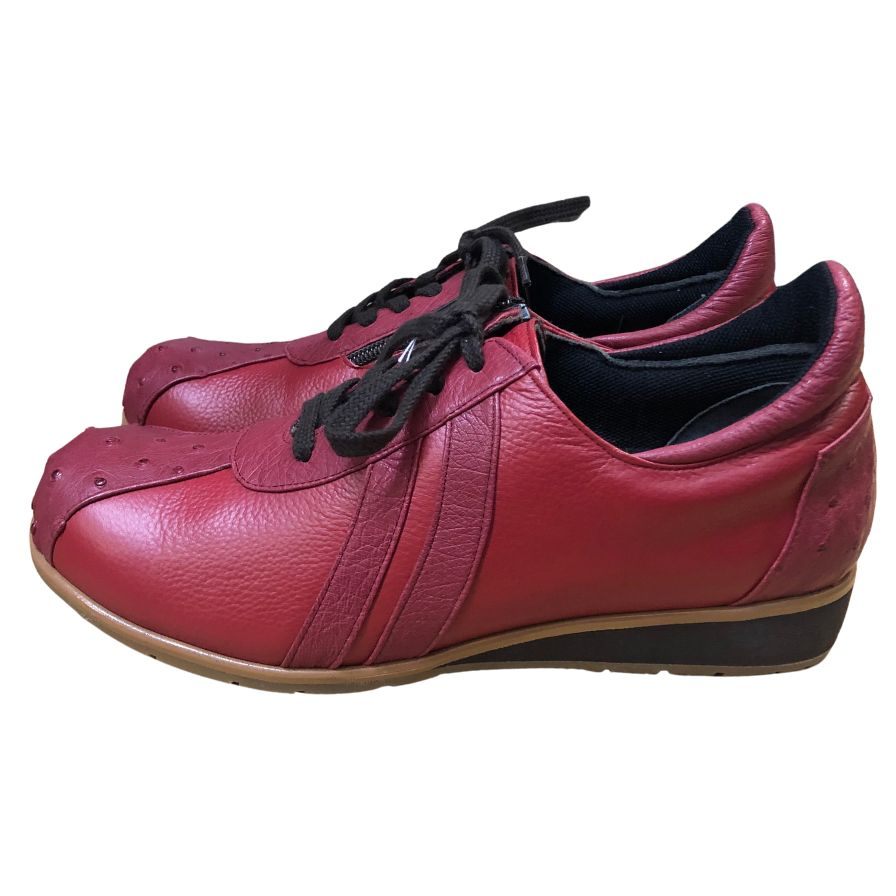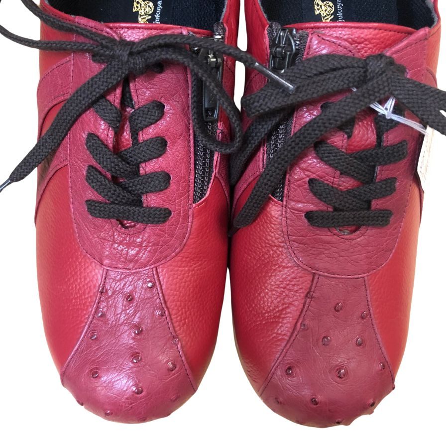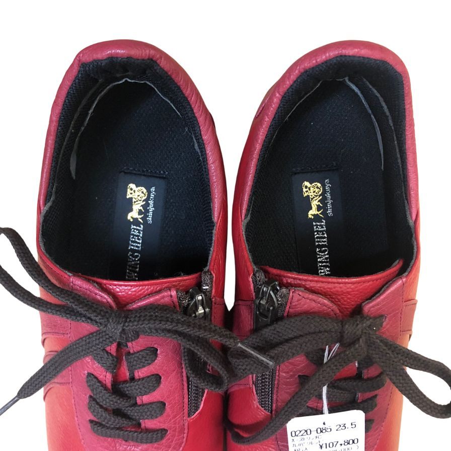 新宿屋 レザースニーカー シャーク 0220-065 レッド 23.5cm レディース shinjukuya 約23.5cm【7F1】