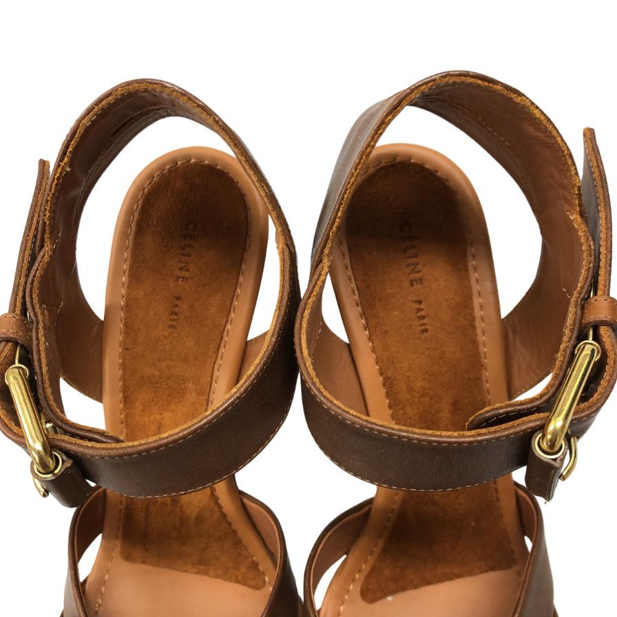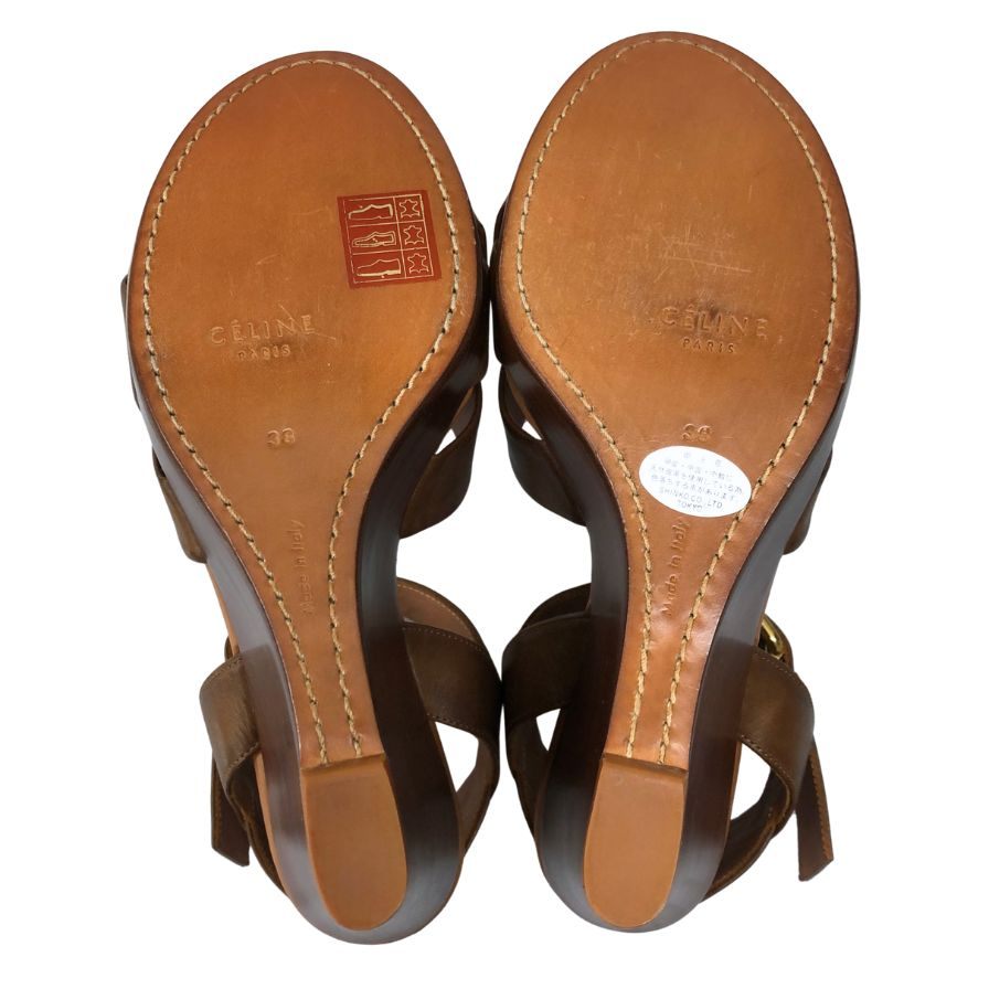 セリーヌ サンダル オープントゥ ウェッジソール レザー ブラウン レディース サイズ38 CELINE 約24.5cm【AFD2】