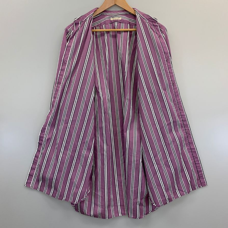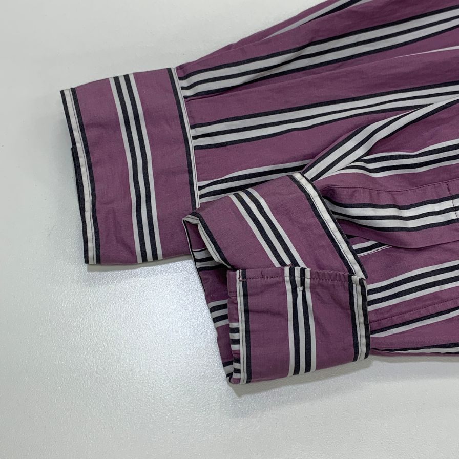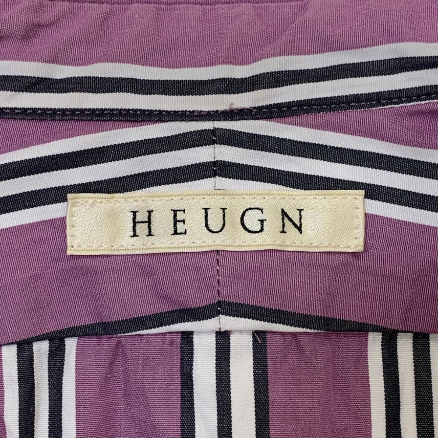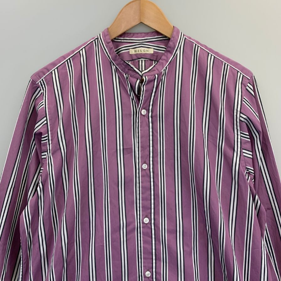 美品◆ユーゲン バンドカラーシャツ ROBシャツ ストライプ パープル系 コットン サイズ2 HEUGN 【AFB15】
