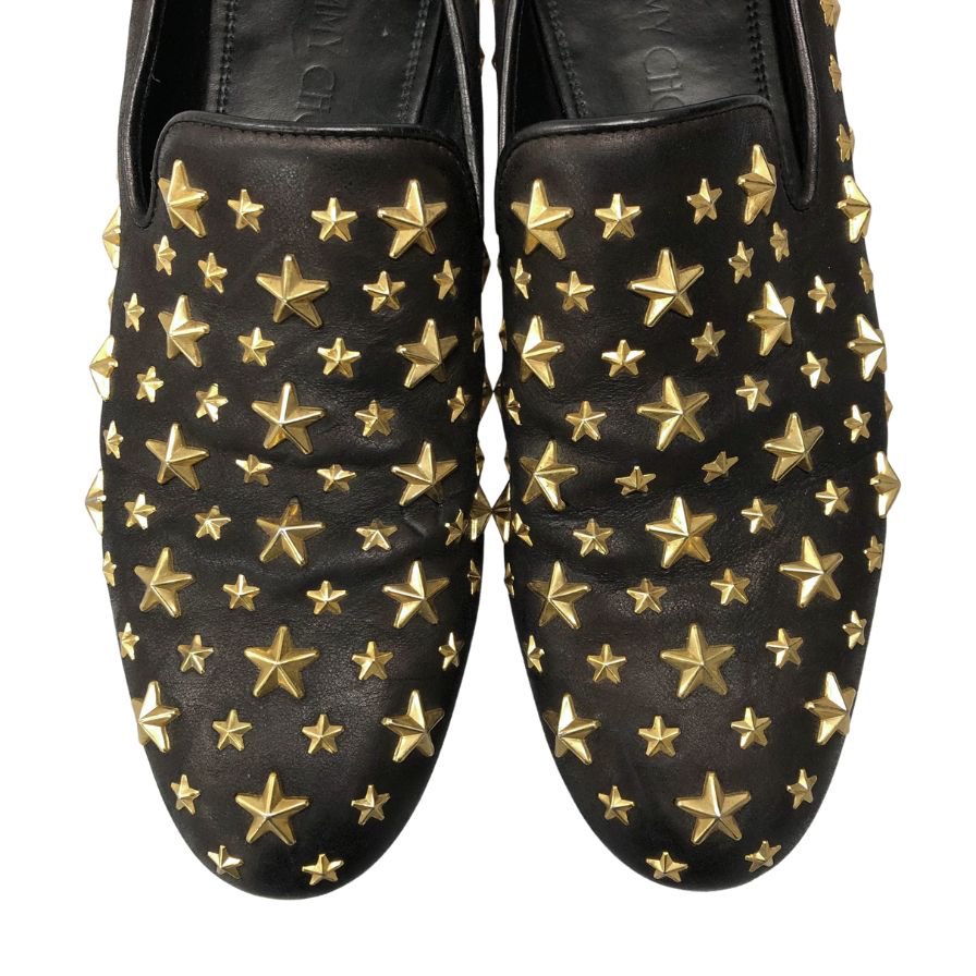 ジミーチュウ レザーシューズ ローファー スタッズ ブラック ゴールド メンズ サイズ39 JMMY CHOO 約24.0cm【AFC6】
