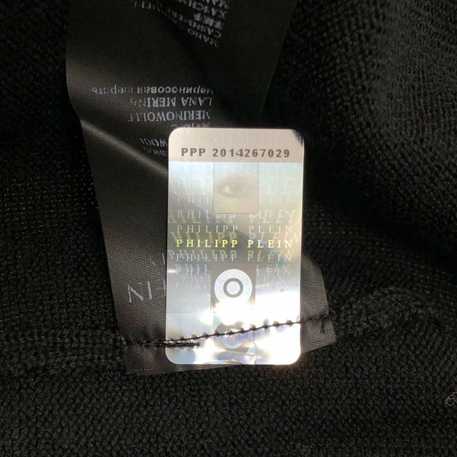 極美品◆フィリッププレイン カーデイガン スカルビジュー ウール100% レディース サイズL ブラック Philipp Plein 【AFB31】