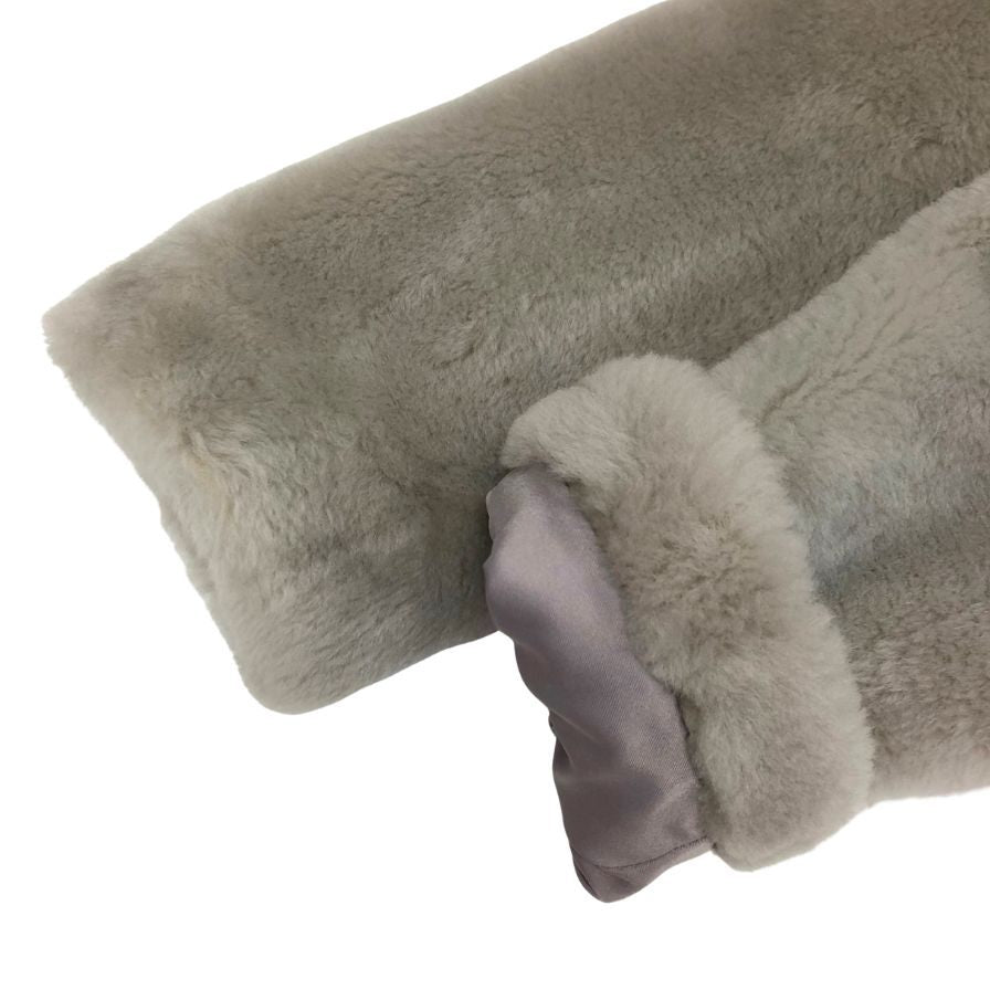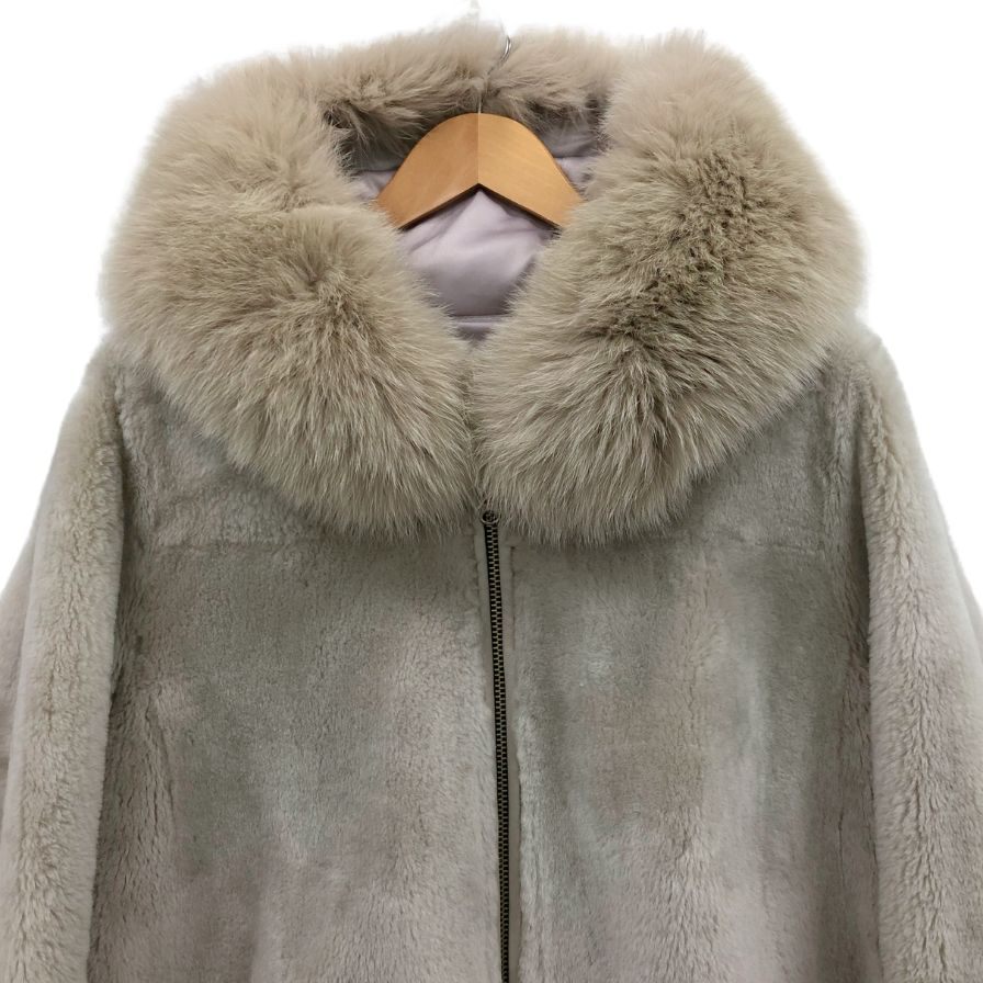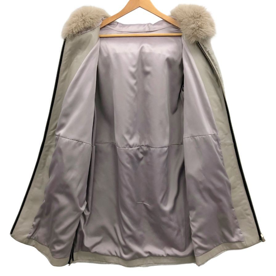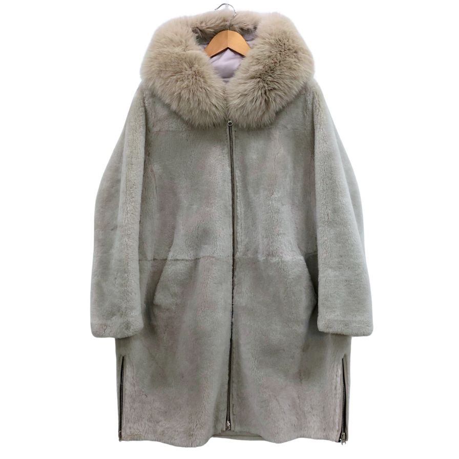 美品◆ノーブランド ムートンコート シープスキン グレー レディース サイズXS スペイン製 ファー付き 【AFF24】