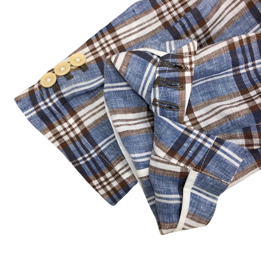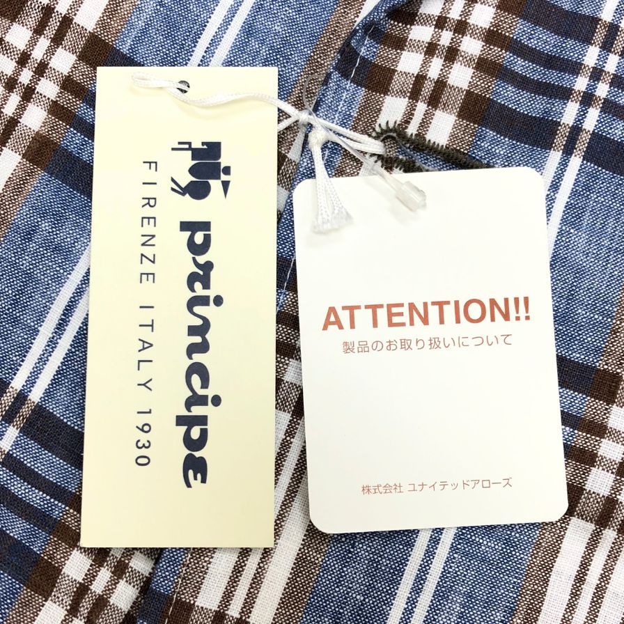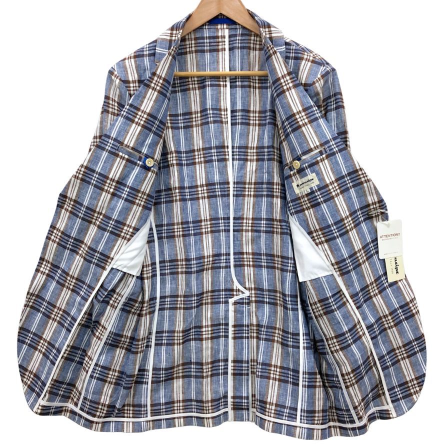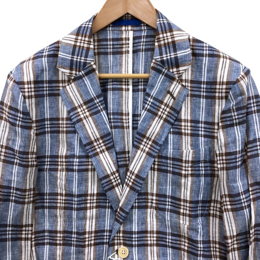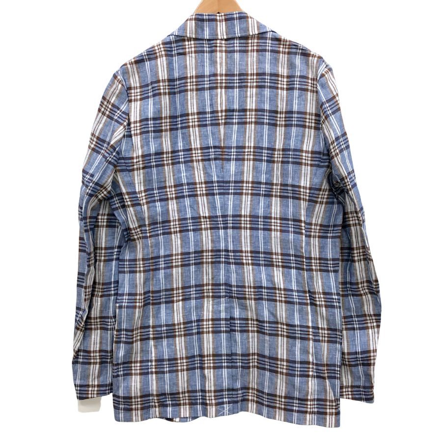 極美品◆プリンチペ テーラードジャケット リネン チェック柄 ブルー サイズL メンズ PRINCIPE 【AFB7】