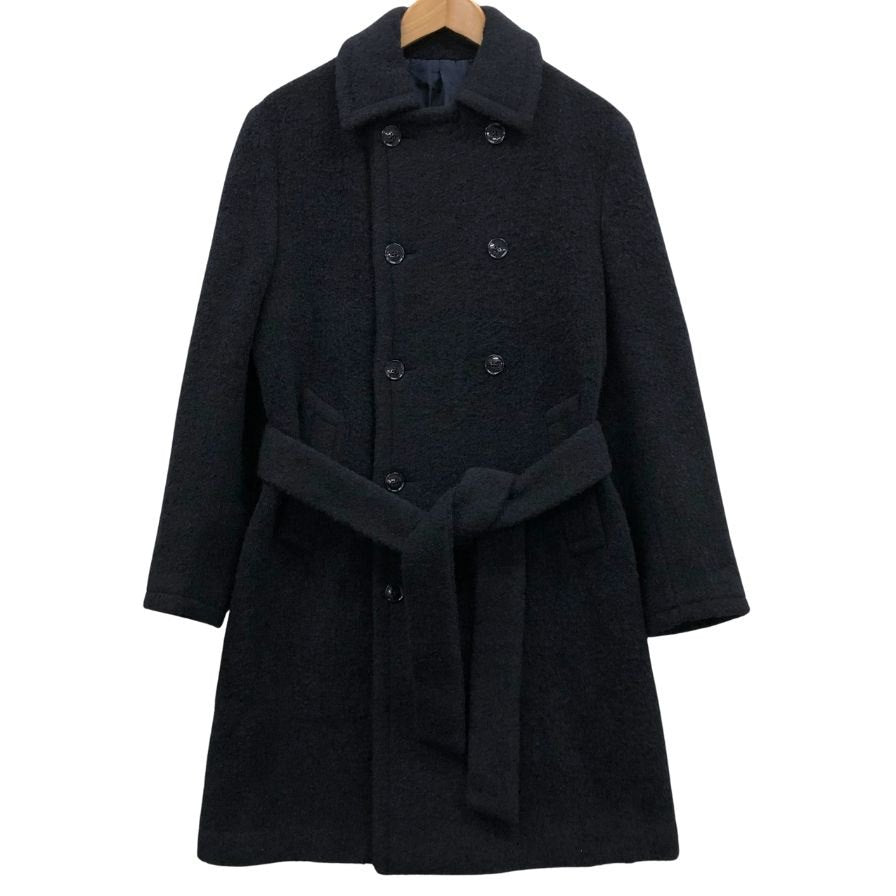 極美品◆マッシモ ピオンボ ベルテッドコート ウール ポリエステル メンズ サイズ46 ブラック MASSIMO PIOMBO 【AFA18】