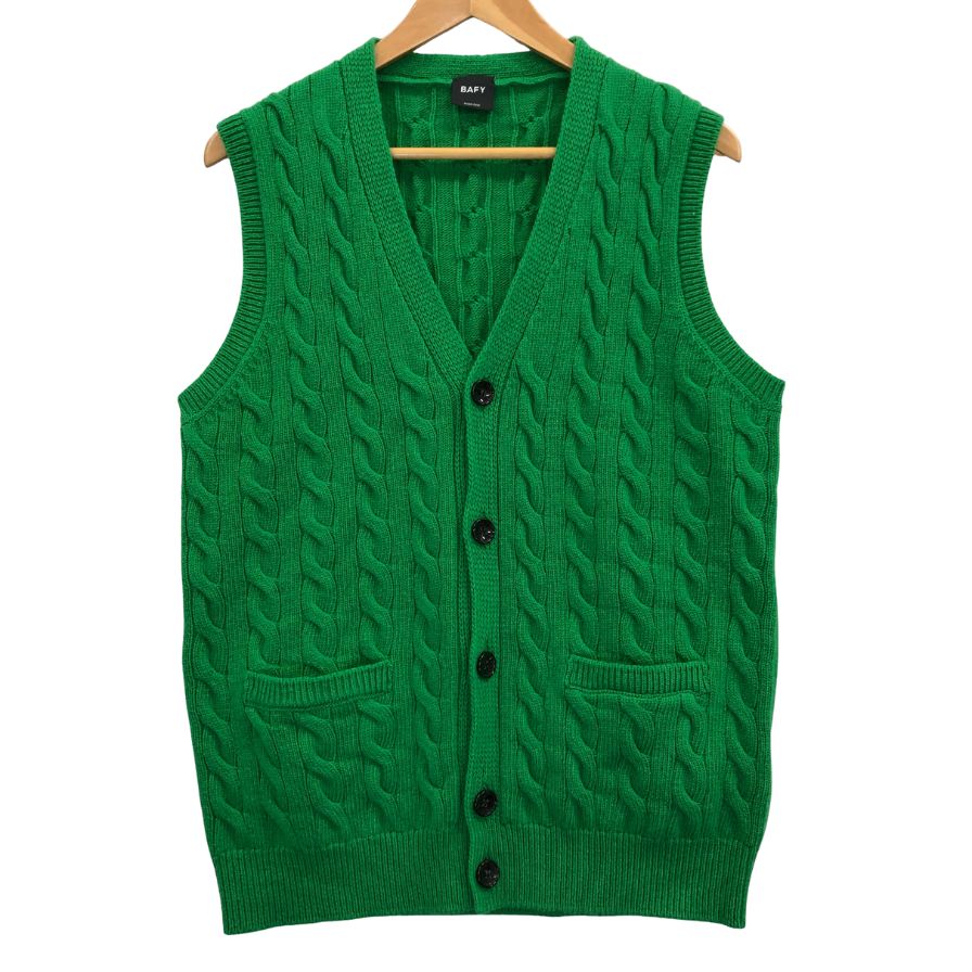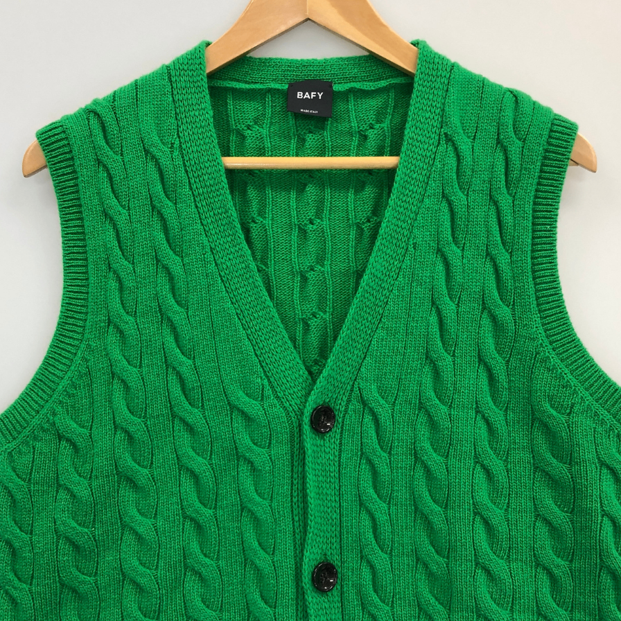 美品◆バフィー ケーブルニット ベスト ウール メンズ グリーン サイズ50 BAFY 【AFB13】