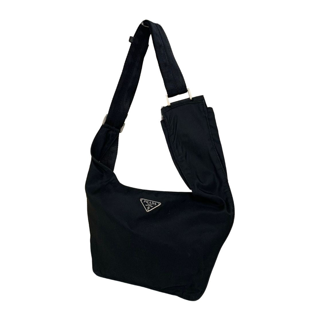 プラダ ナイロン ショルダーバッグ サコッシュ ロゴプレート ブラック ユニセックス PRADA【AFE9】