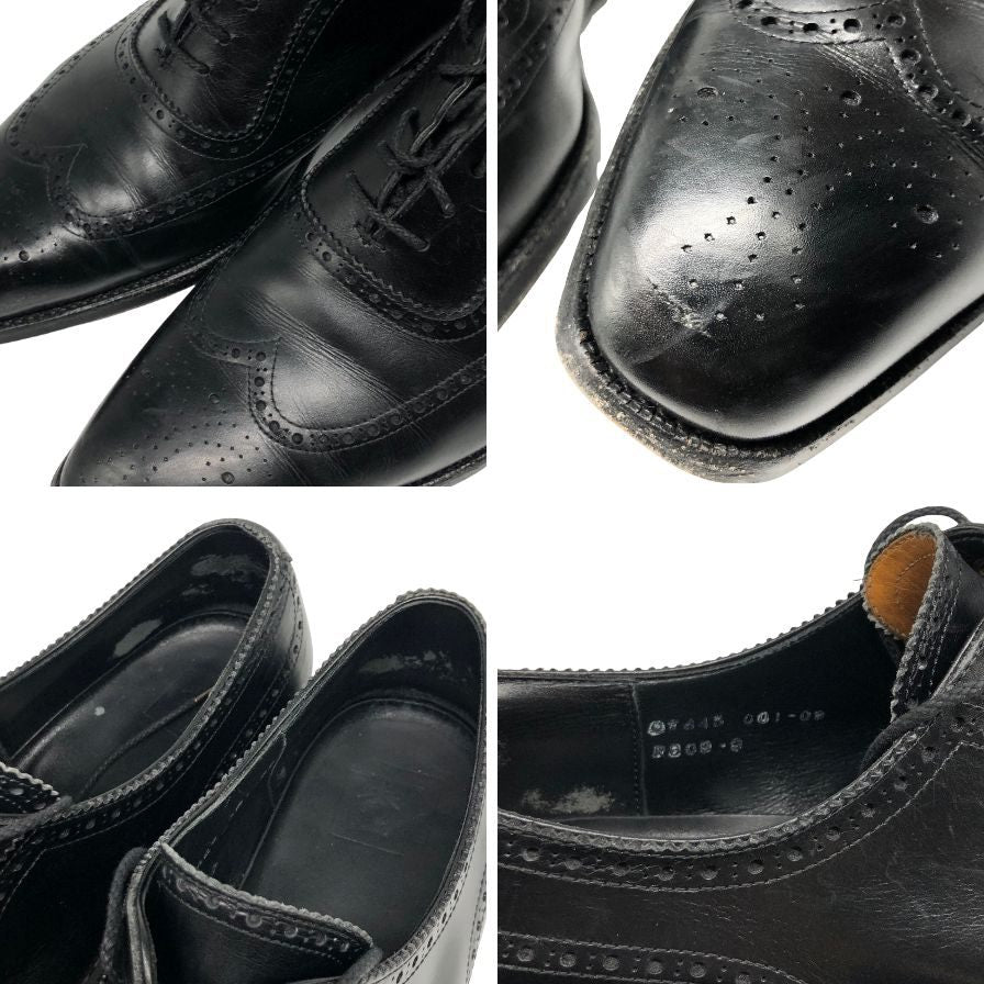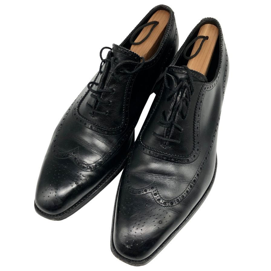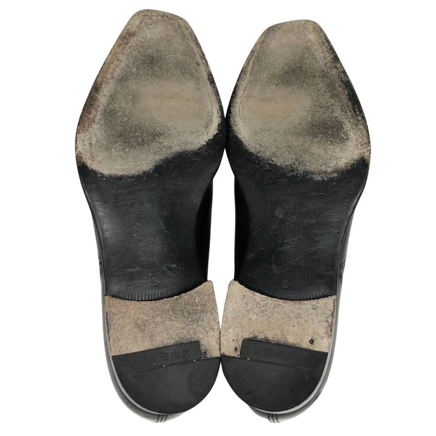 三陽山長 レザーシューズ フルブローグ 内羽根 ウィングチップ R309 カーフ レザー ブラック メンズ サイズ9 約27.5cm【AFD15】