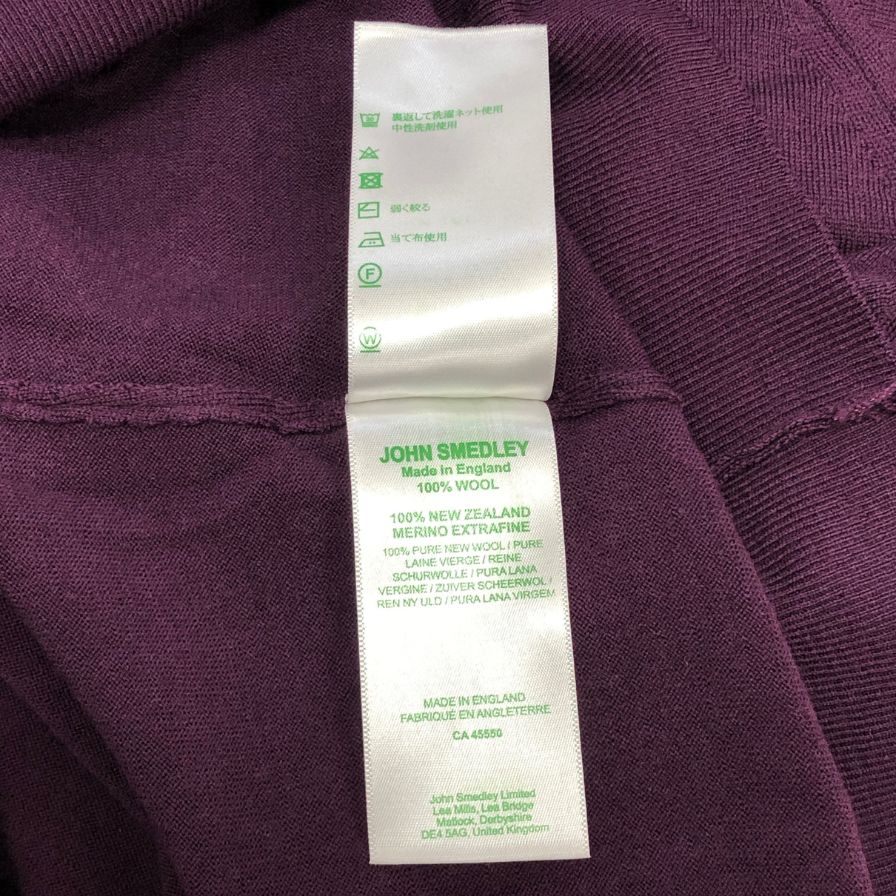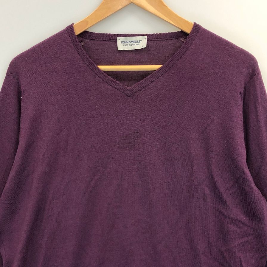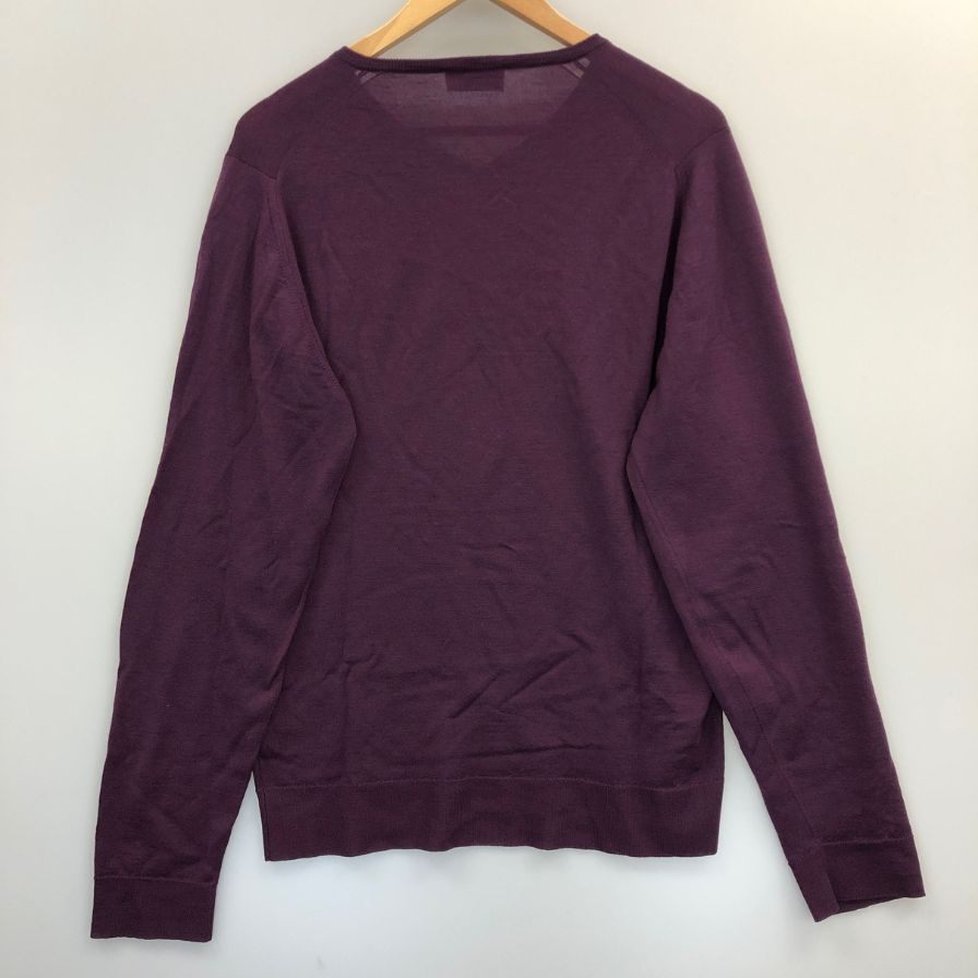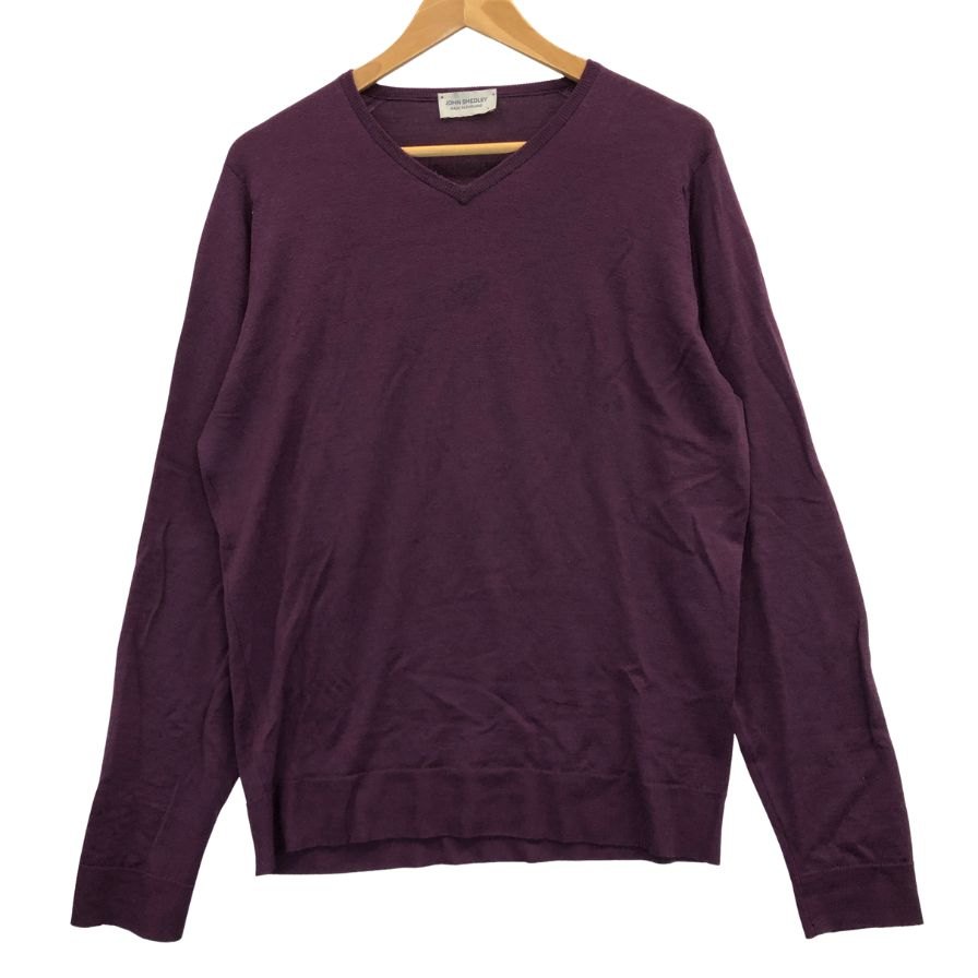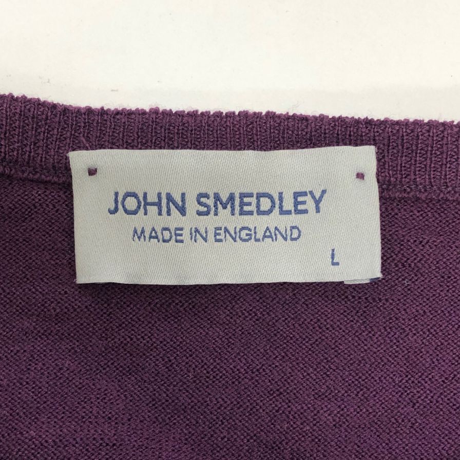 中古◆ジョンスメドレー ニットセーター ウール ハイゲージ Vネック パープル メンズ サイズL JOHN SMEDLEY 【AFB4】
