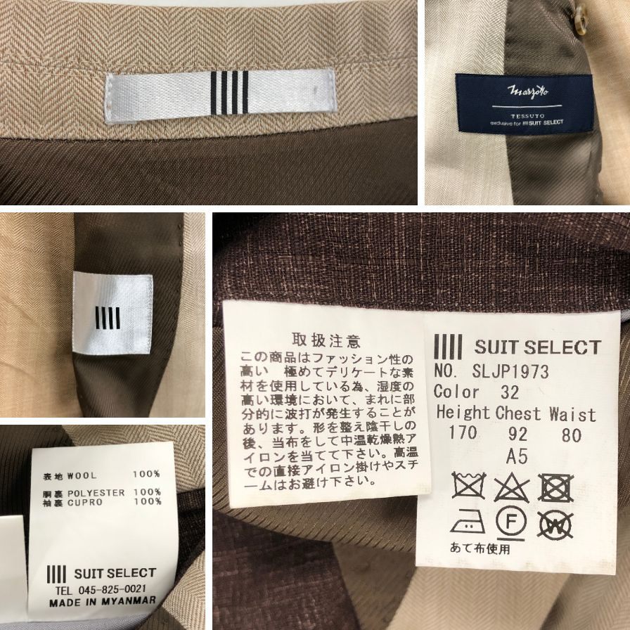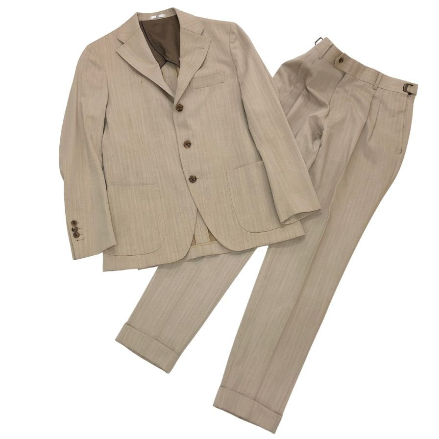 スーツセレクト ウール テーラードジャケット SLJP1973 & アジャスター付きスラックス SLJP1973 セットアップ ベージュ ストライプ サイズA5 メンズ SUIT SELECT SETUP【AFA4】