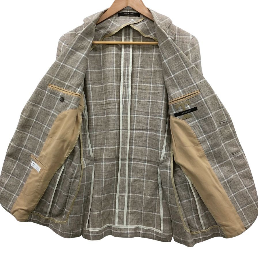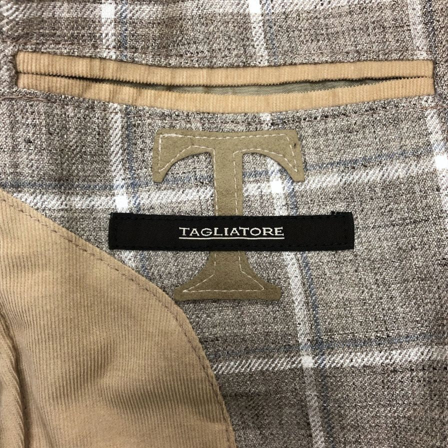 美品◆タリアトーレ テーラードジャケット 1SMC22K チェック柄 リネン グレー系 メンズ サイズ44R TAGLIATORE 【AFB41】