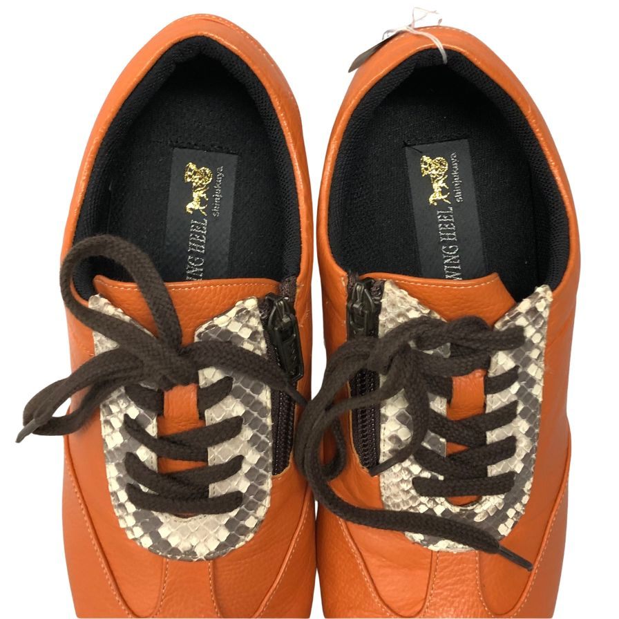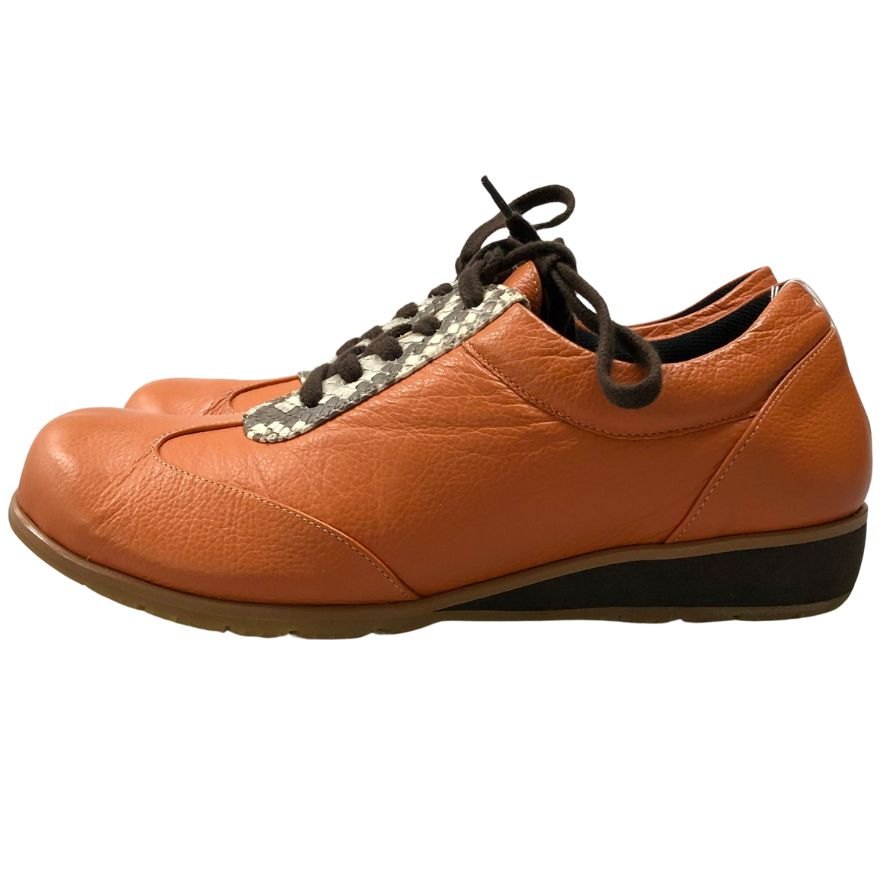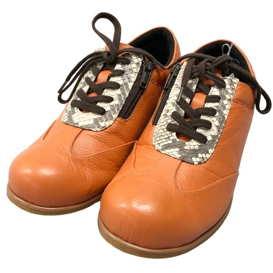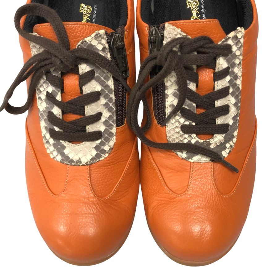 新宿屋 レザースニーカー レザー×パイソン 0250-545 オレンジ 23.5cm レディース shinjukuya 約23.5cm【7-5】