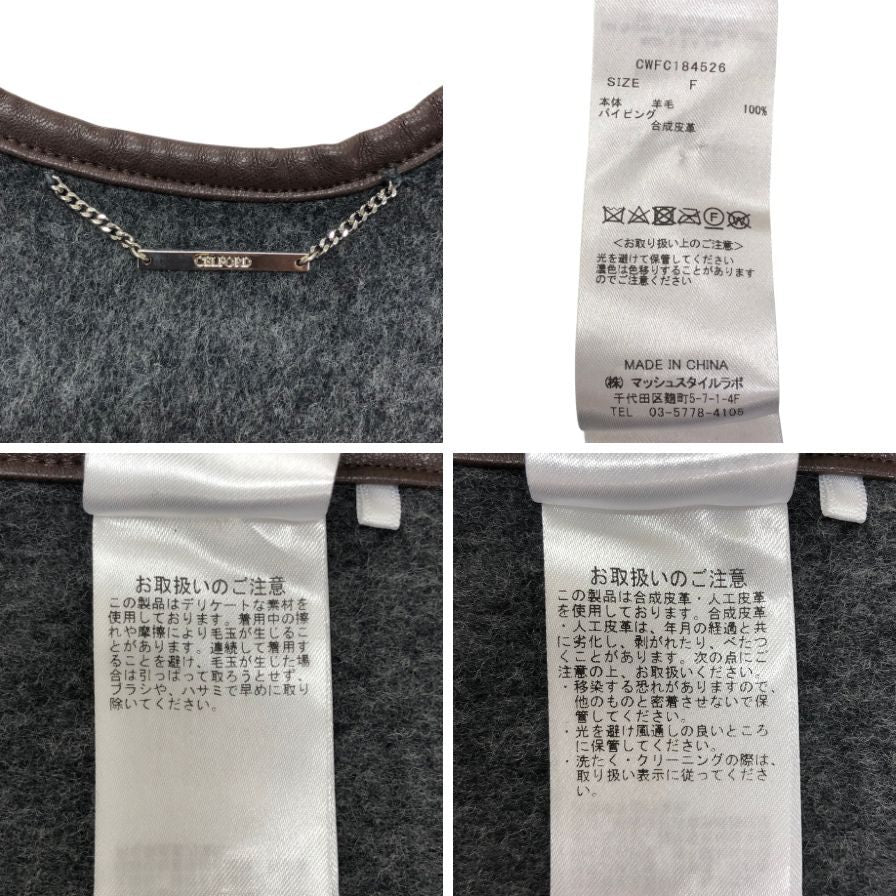 セルフォード ポンチョ ウール レディース グレー サイズF CELFORD【AFB4】