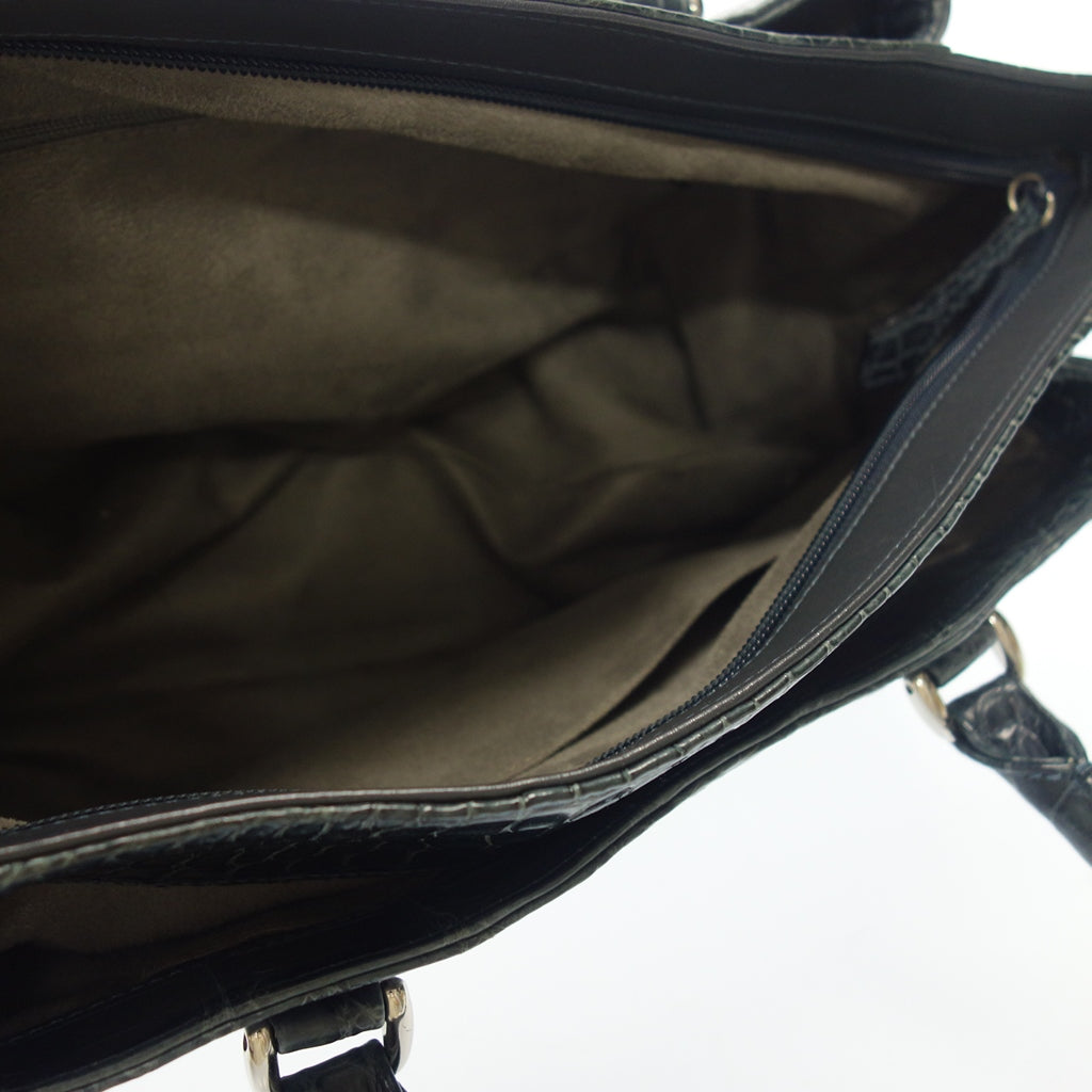JRA認証 ノーブランド クロコダイル ハンドバッグ グリーン系 JRAタグ付【AFE2】