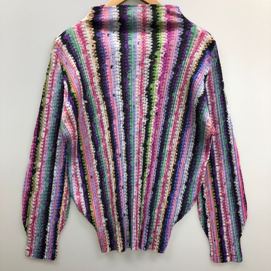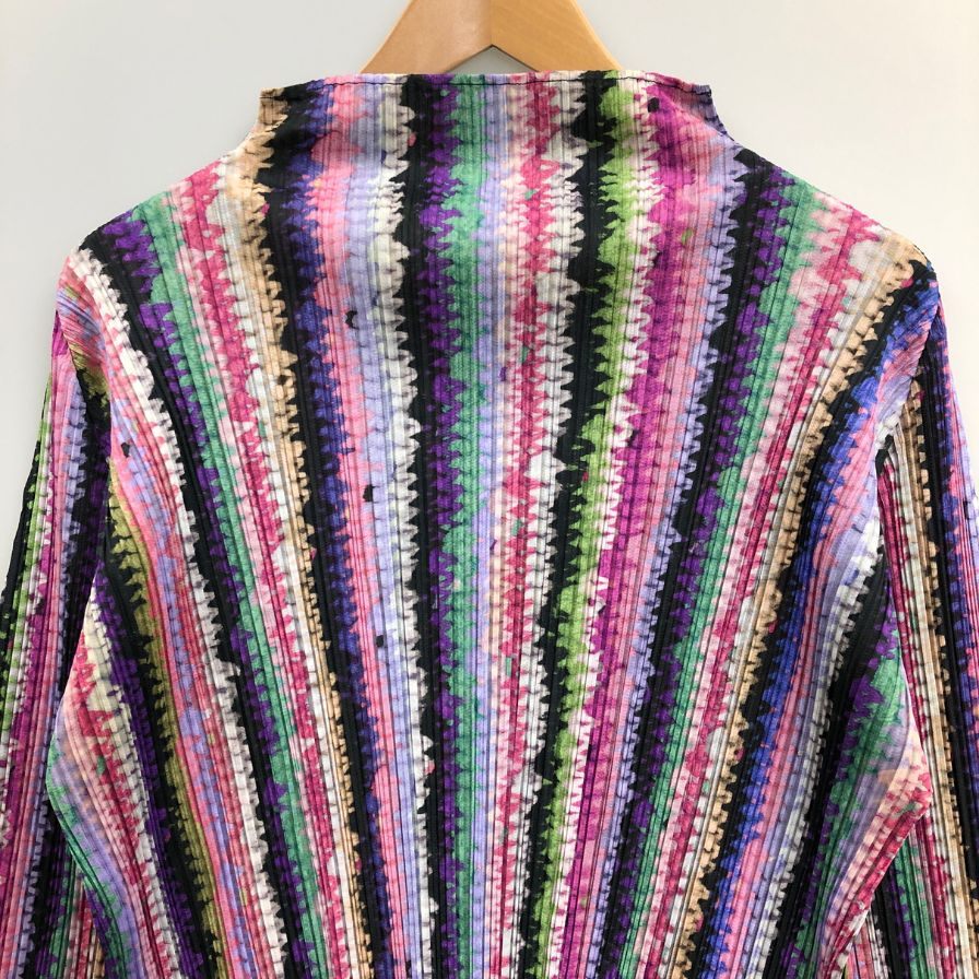 極美品◆プリーツプリーズ イッセイミヤケ カットソー 長袖 ボトルネック マルチカラー サイズ3 PP43-JK783 PLEATS PLEASE ISSEY MIYAKE 【AFB5】