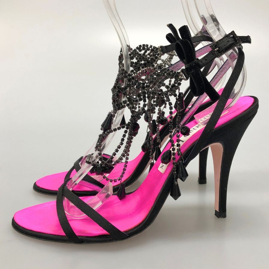 クリスチャン ラクロワ パンプス ビーズストラップ レザー ヒール ブラック ピンク レディース サイズ38 Christian Lacroix 約24.5cm【AFD1】