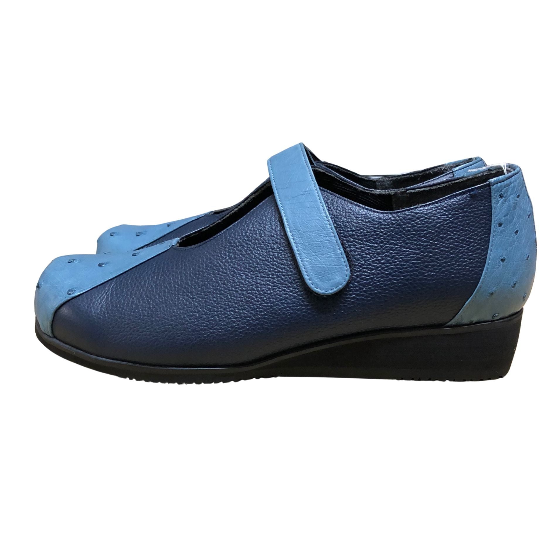 新宿屋 レザーパンプス オーストリッチ ブルージーン 2701-065 ブルー 24cm レディース shinjukuya 約24.0cm【7F3-3】