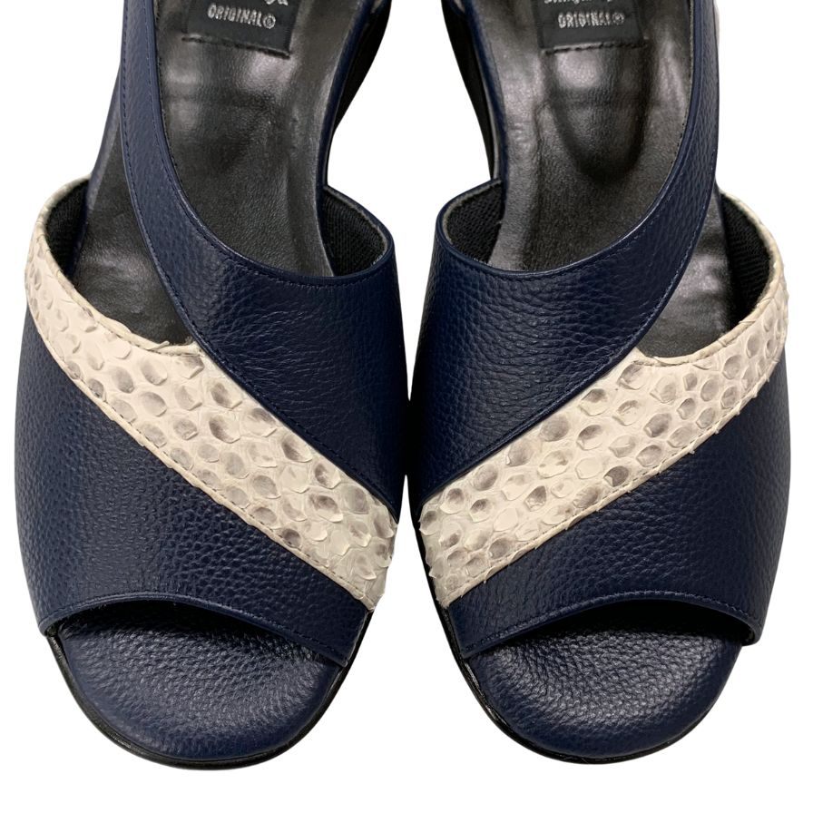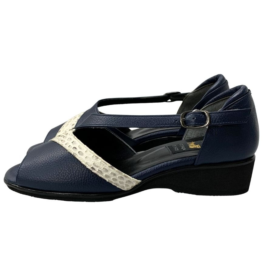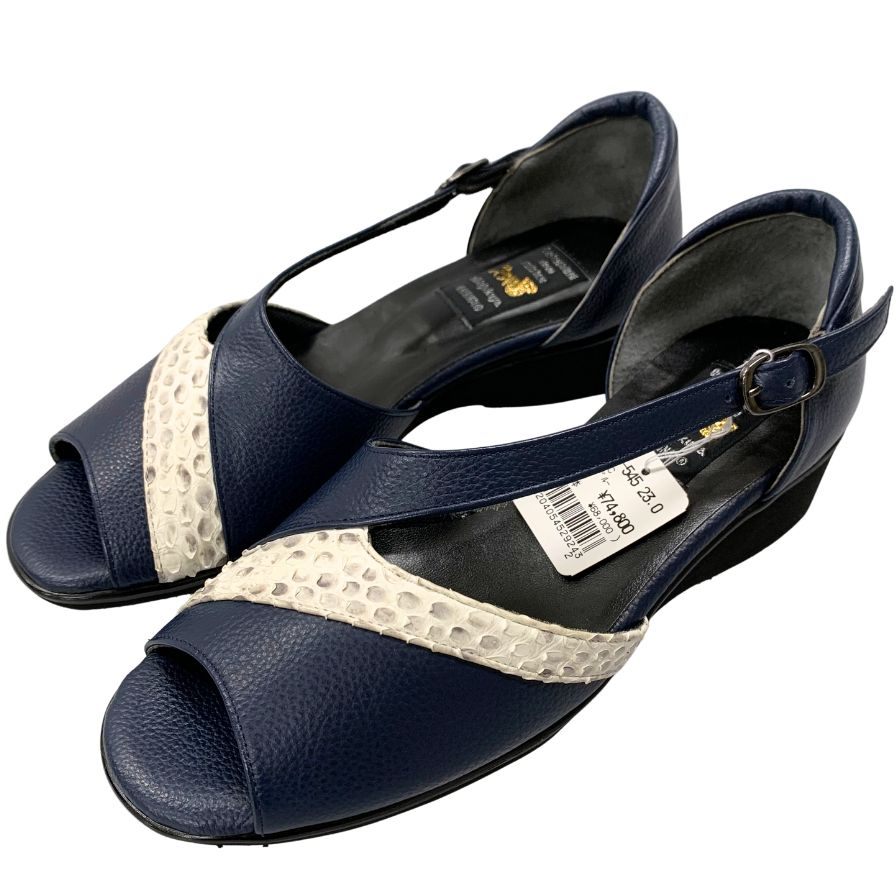 新宿屋 レザースサンダル レザー×パイソン 2040-545 23.0cm レディース ネイビー shinjukuya 約23.0cm【7-13】
