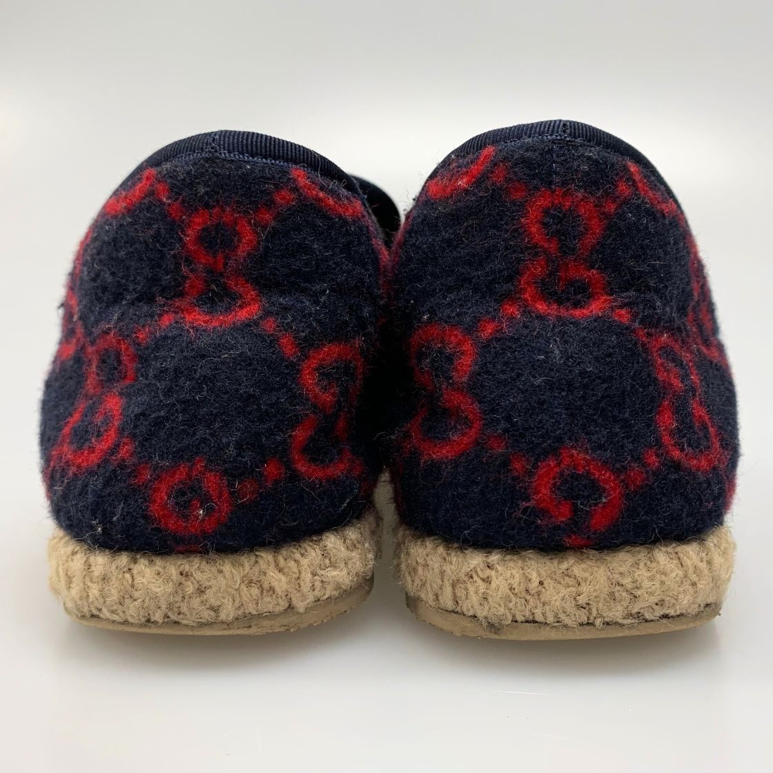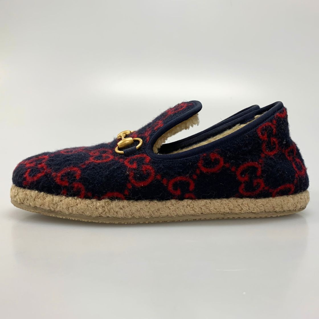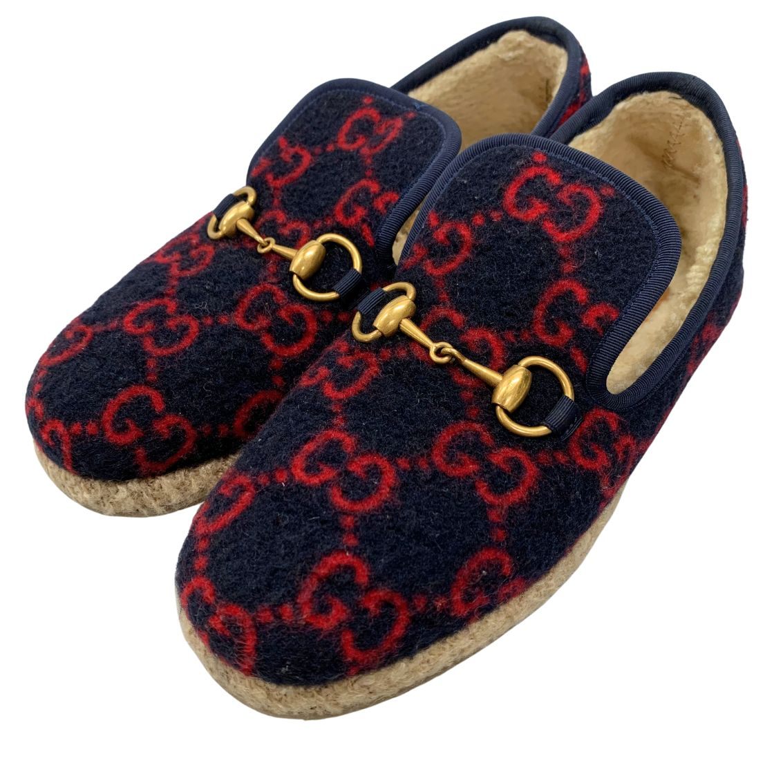 グッチ スリッポン ビット ローファー グッチ ムートン ボア エスパドリーユ GG 総柄 ネイビー レッド レディース サイズ36.5 GUCCI 約23.5cm【AFC4】