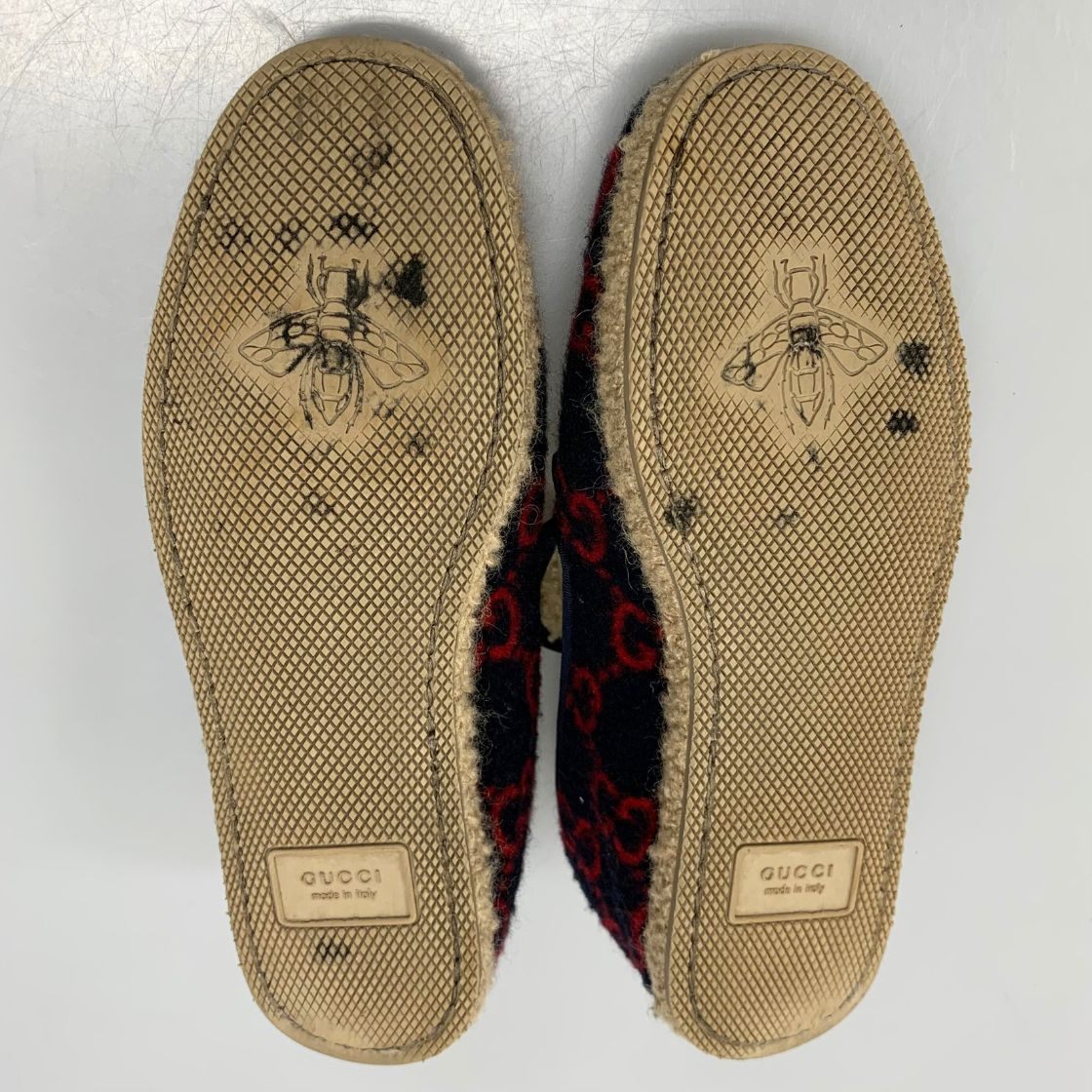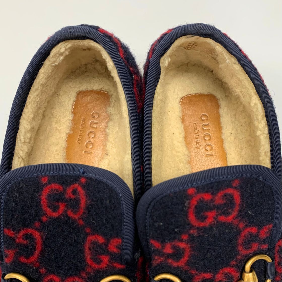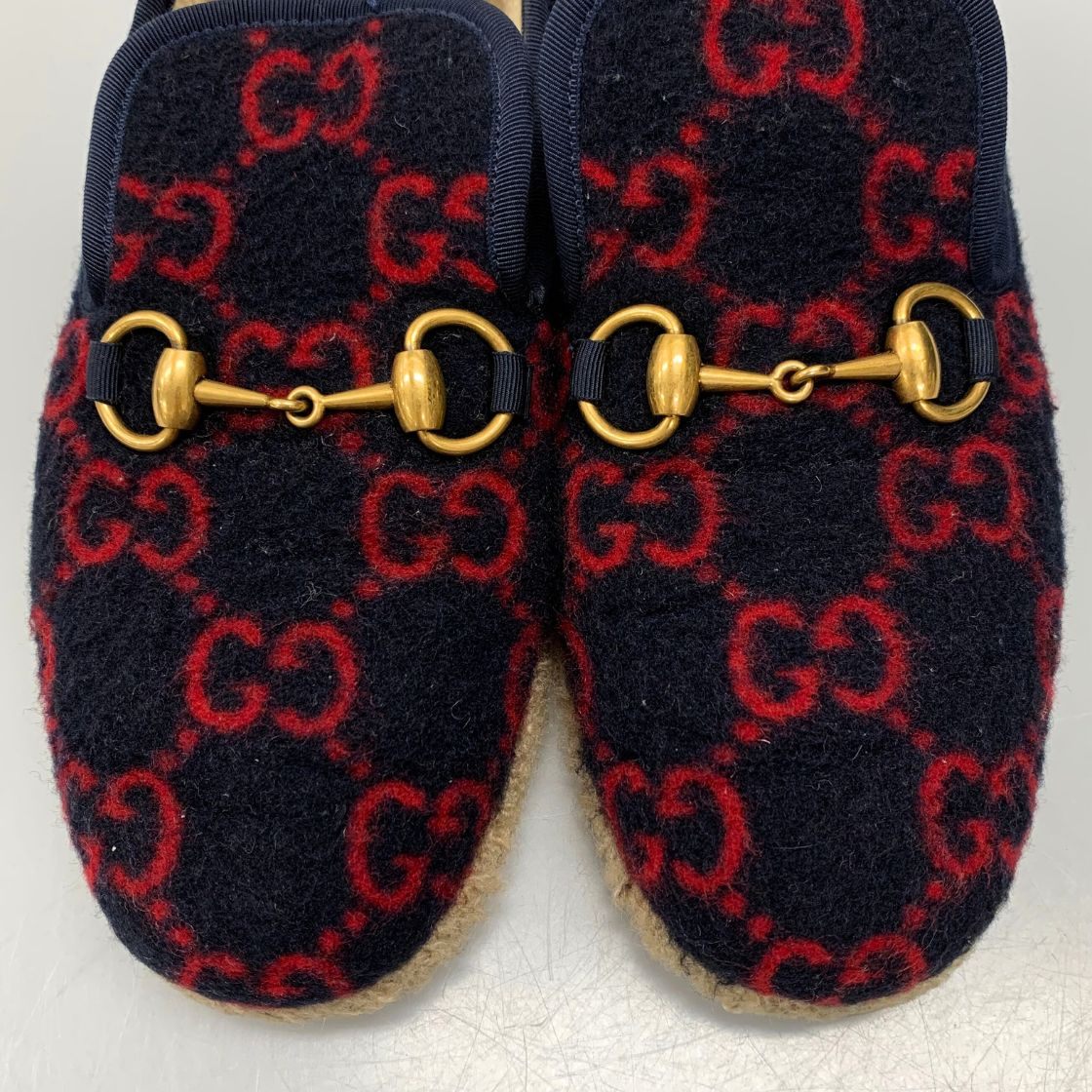 グッチ スリッポン ビット ローファー グッチ ムートン ボア エスパドリーユ GG 総柄 ネイビー レッド レディース サイズ36.5 GUCCI 約23.5cm【AFC4】