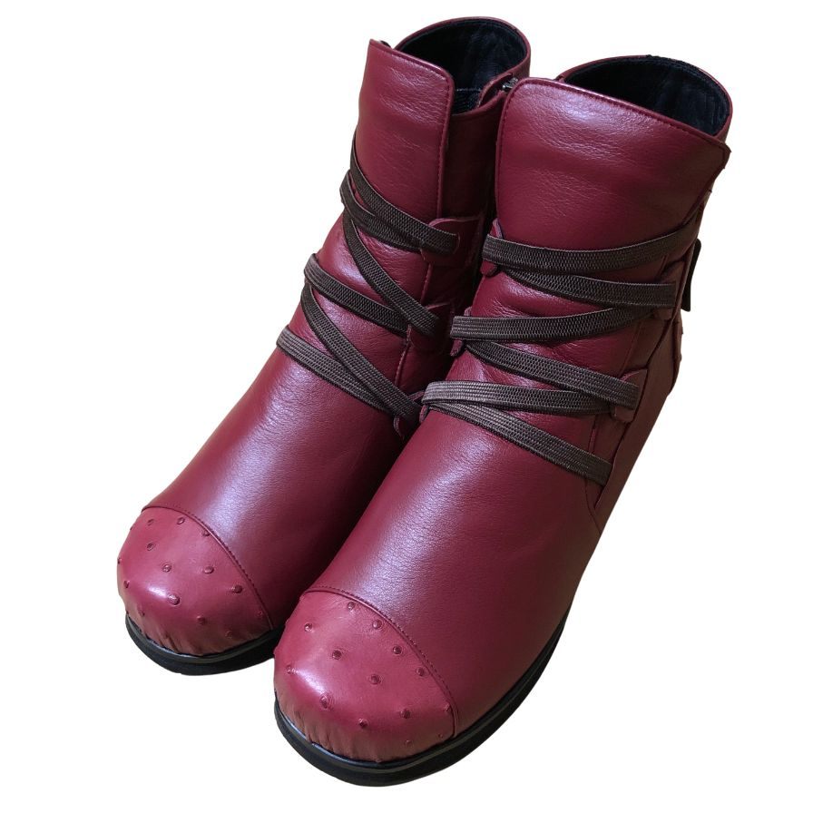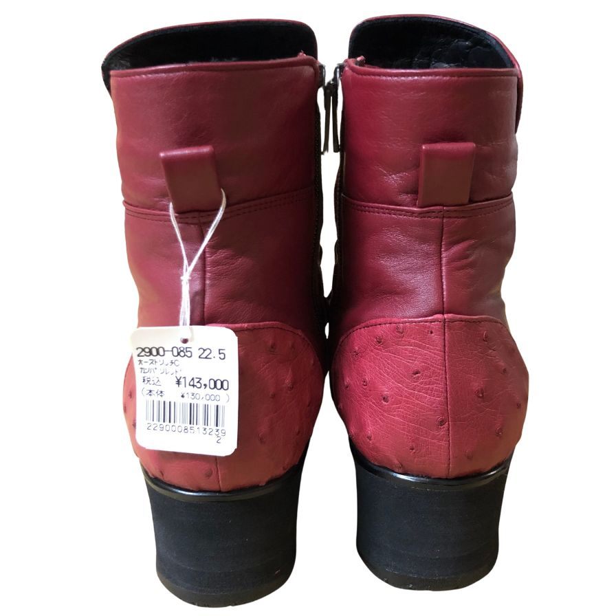 新宿屋 レザーブーツ オーストリッチ 2900-055 レッド 22cm レディース shinjukuya 約22.0cm【7F2-1】