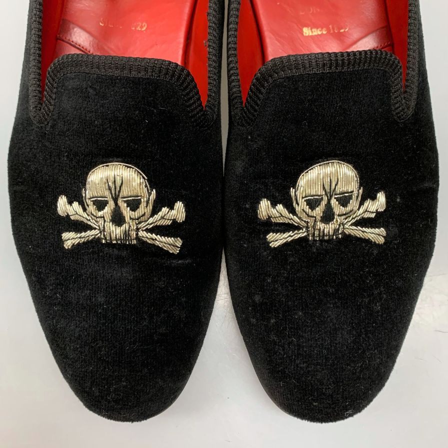 トリッカーズ イングランド チャーチル スカル ボーン スリッポン ブラック ベルベット サイズ6ハーフ メンズ オペラシューズ Tricker’s ENGLAND CHURCHILL SKULL&BONES Black Velvet 約24.5cm【AFD13】