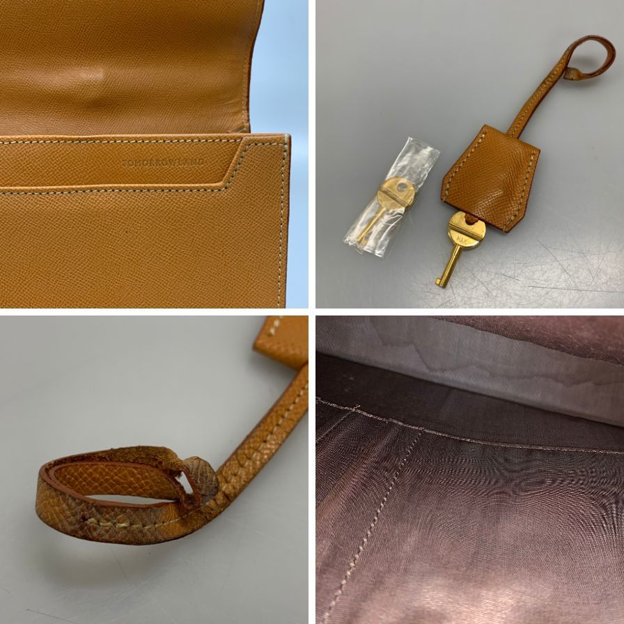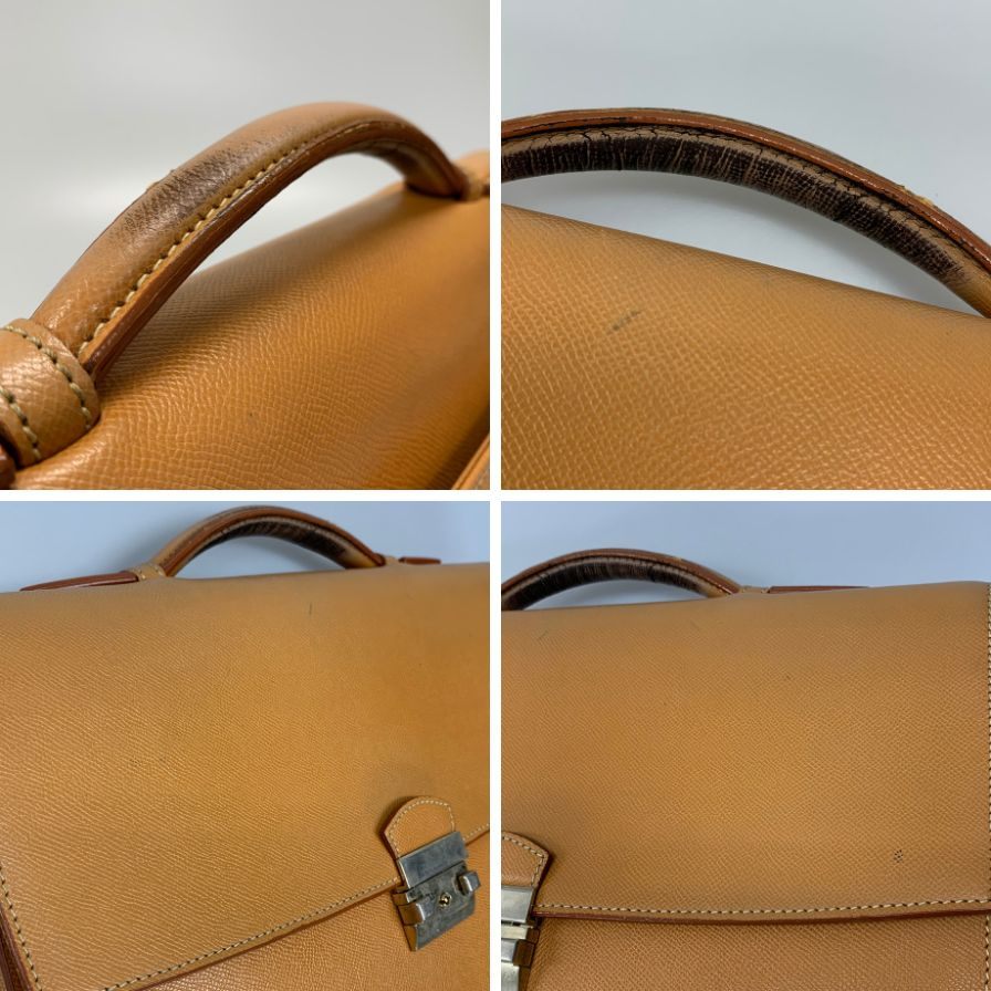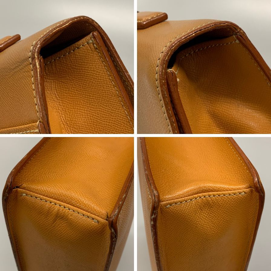 金具部分スレ、持ち手コバ割れ&ダメージ、強い使用感、角キズ、表面スレと汚れが見られます。 内側状態ランク【B】 底面シミが見られます。 |
