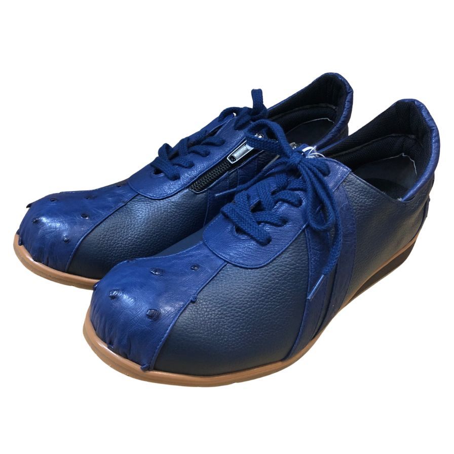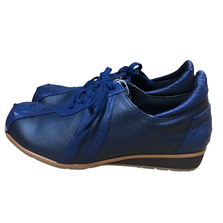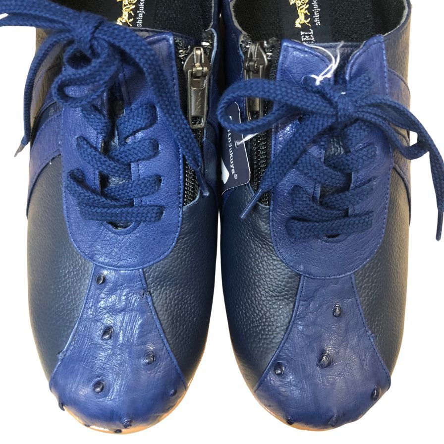 新宿屋 レザースニーカー オーストリッチ 0220-085 ブルー 24.5㎝ レディース shinjukuya 約24.5cm【7F1】